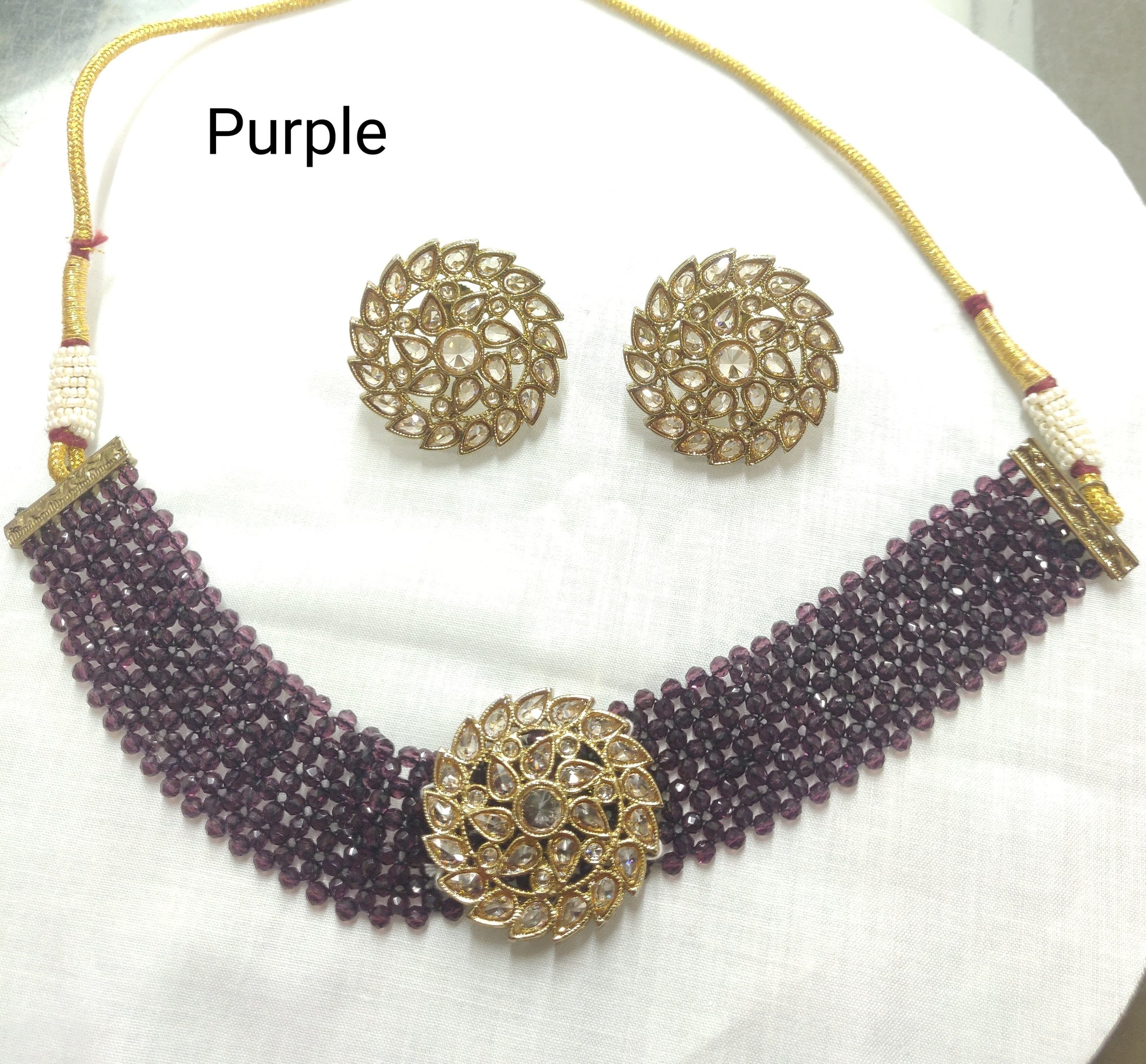 Polki jewellery in golden finish with Polki Kundan with beads stones to make these exquisite necklace really special – light in weight & can be paired with almost any outfit perfect accessory for every occasions party & wedding.