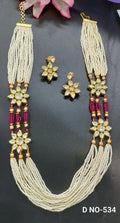 Elevate your collection with this exquisite Golden Kundan Long Necklace, an embodiment of refined craftsmanship. Featuring meticulously set kundan stones, it reflects traditional artistry with a sophisticated finish. Its elongated design enhances elegance, making it ideal for special occasions or ceremonial wear. This necklace promises to add a timeless luxurious touch to your ensemble while showcasing expert detailing distinctive to authentic kundan jewelry.