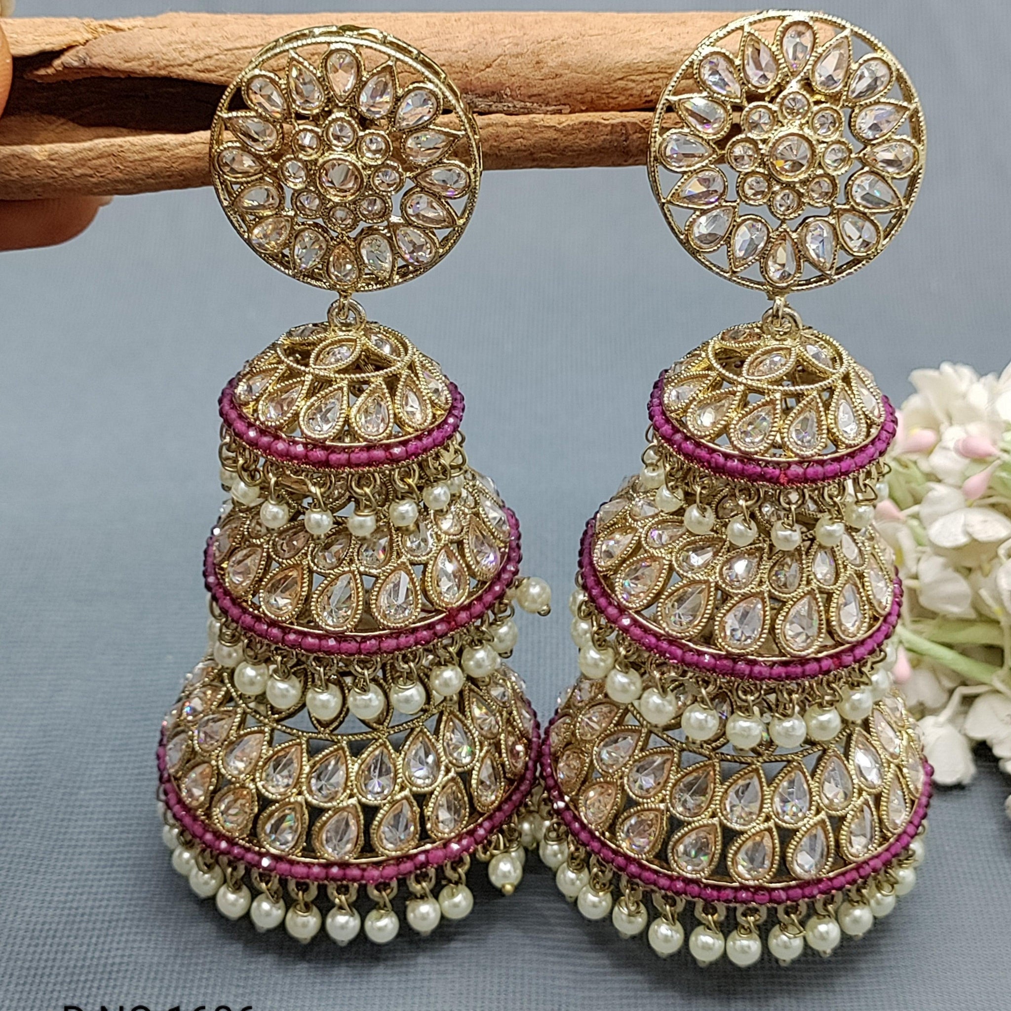 Expertly crafted with stunning Polki stones, jhumki earrings are a must-have for any jewelry collection. The intricate design and high-quality materials.