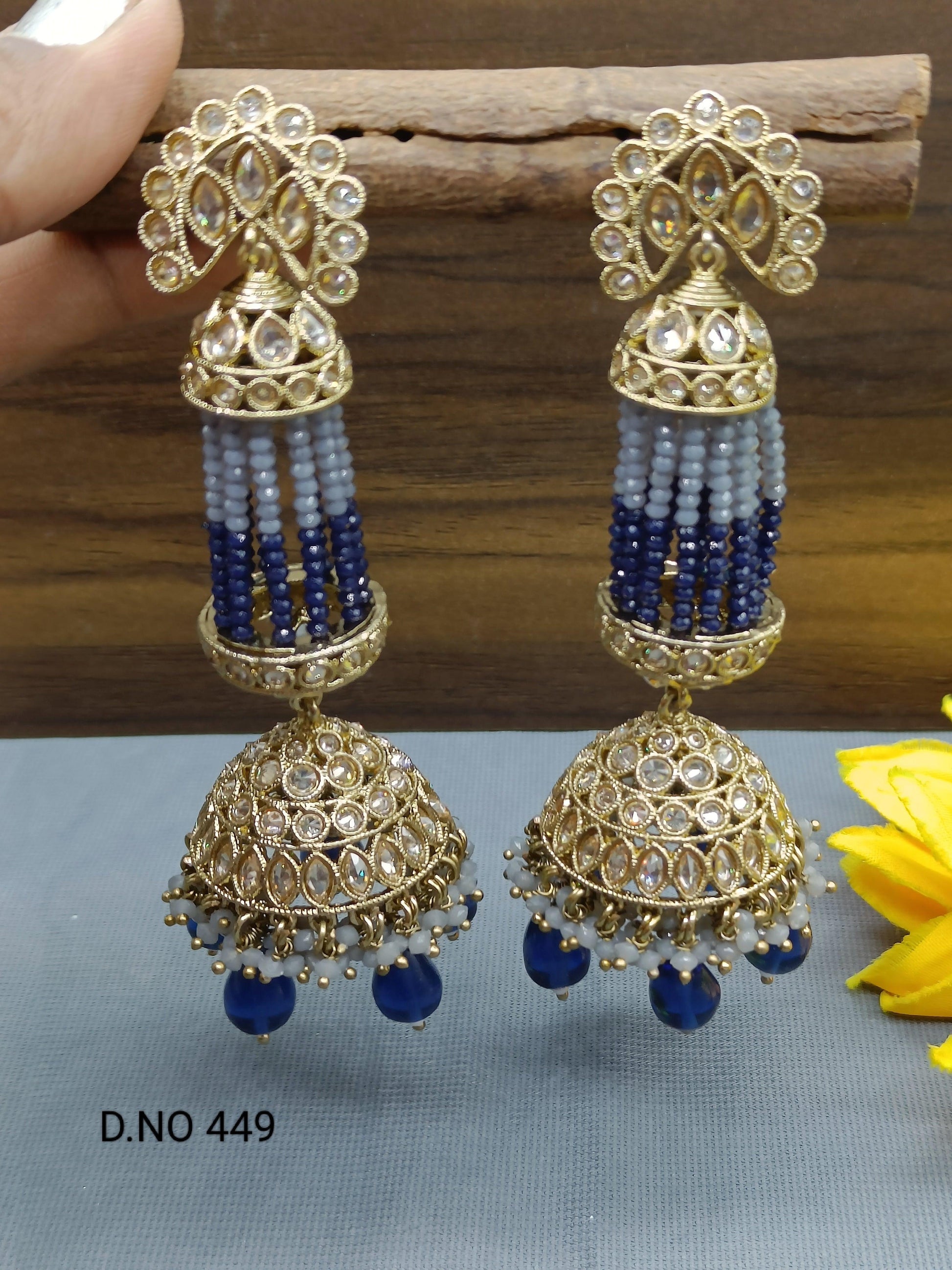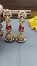 Polki Earring Long Jhumki Mehndi Sku-449 A3