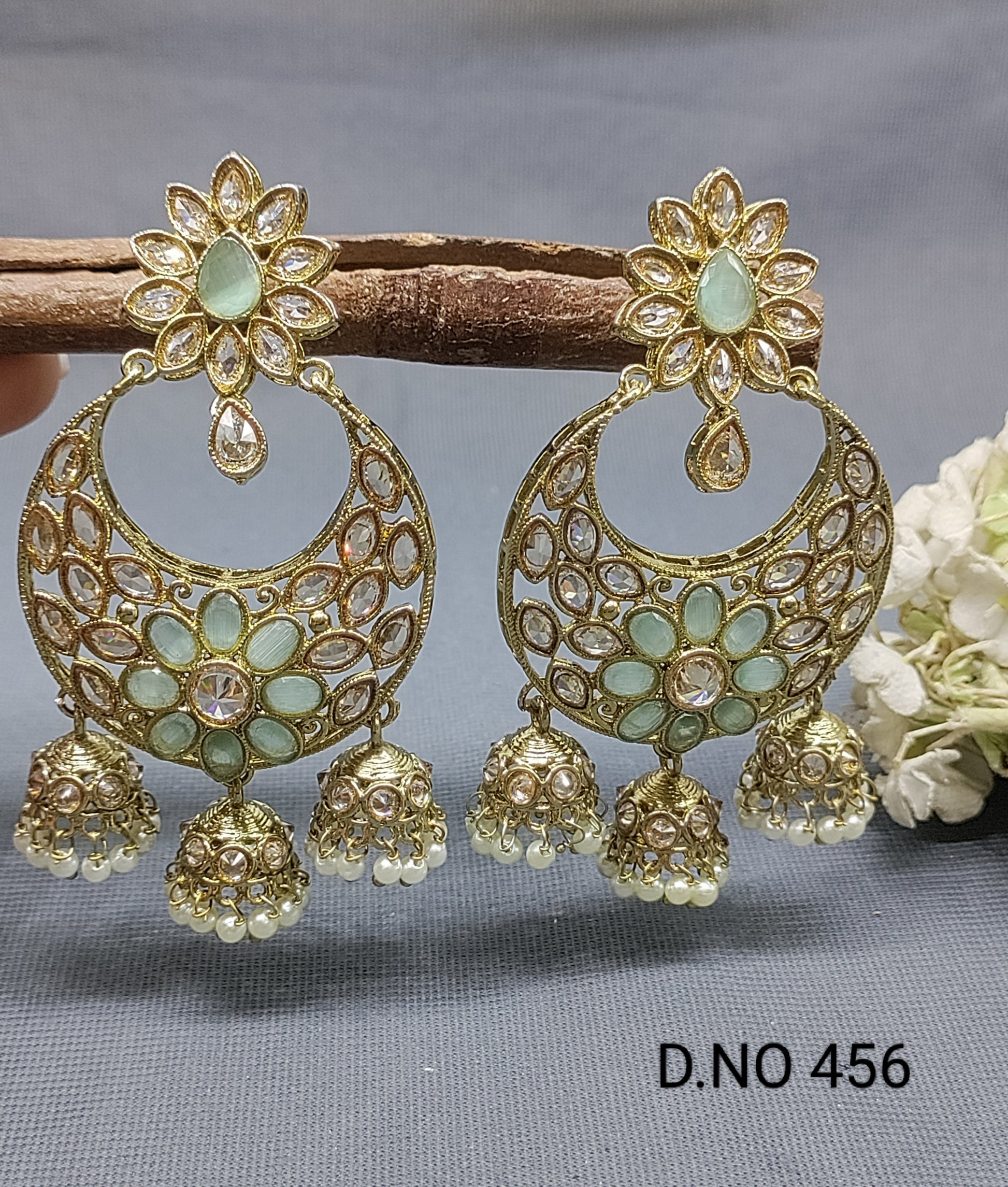 Polki Earring Mehndi Sku-456 A6