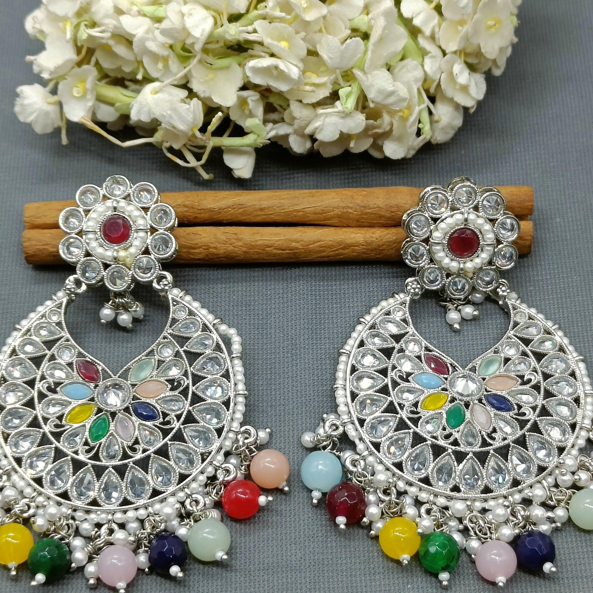 Polki jewellery in golden Rodium finish with Polki Kundan with beads stones to make these exquisite Earring really special – light in weight & can be paired with almost any outfit perfect accessory for every occasions party & wedding.