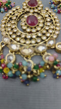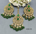 Beautiful Polki POLKI EARRING & TICA in golden Mahendi finish with Polki Kundan with beads stones to make these exquisite Earring really special – light in weight & can be paired with almost any outfit perfect accessory for every occasions party & wedding.