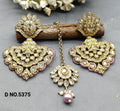 Polki Earring & Tica Mehndi Sku 5375 A5. The Polki Mehandi design adds a unique and intricate touch, perfect for any occasion.