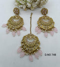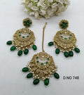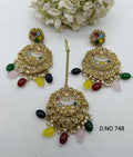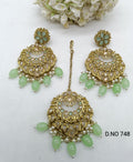 Polki Earring & Tica Mehndi set. Made with exquisite Polki stones and intricate Mehndi designs, this set is perfect for a touch of elegance and tradition. The perfect accessory for any occasion.