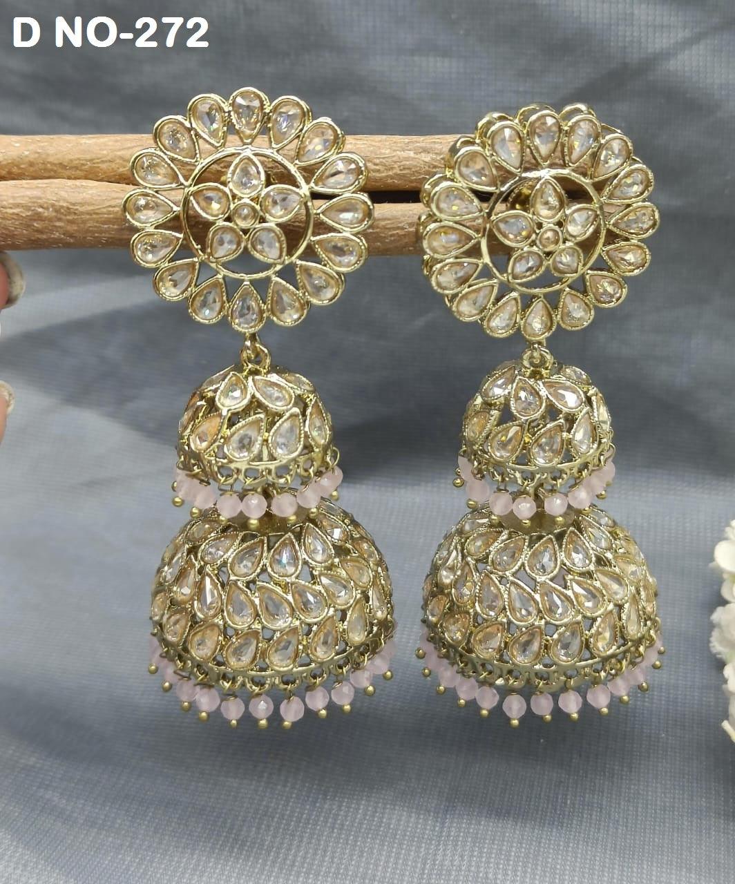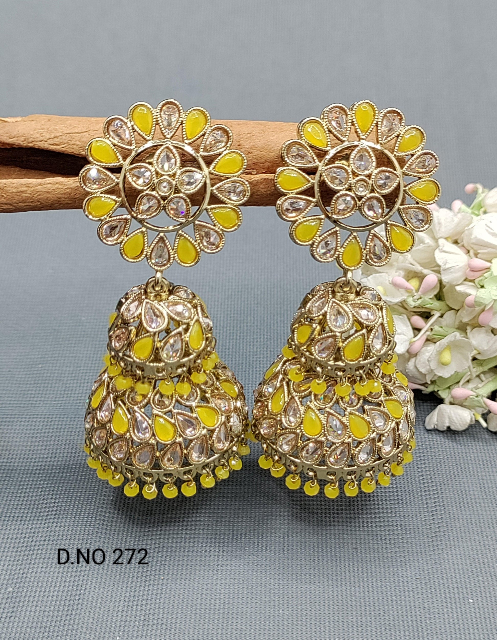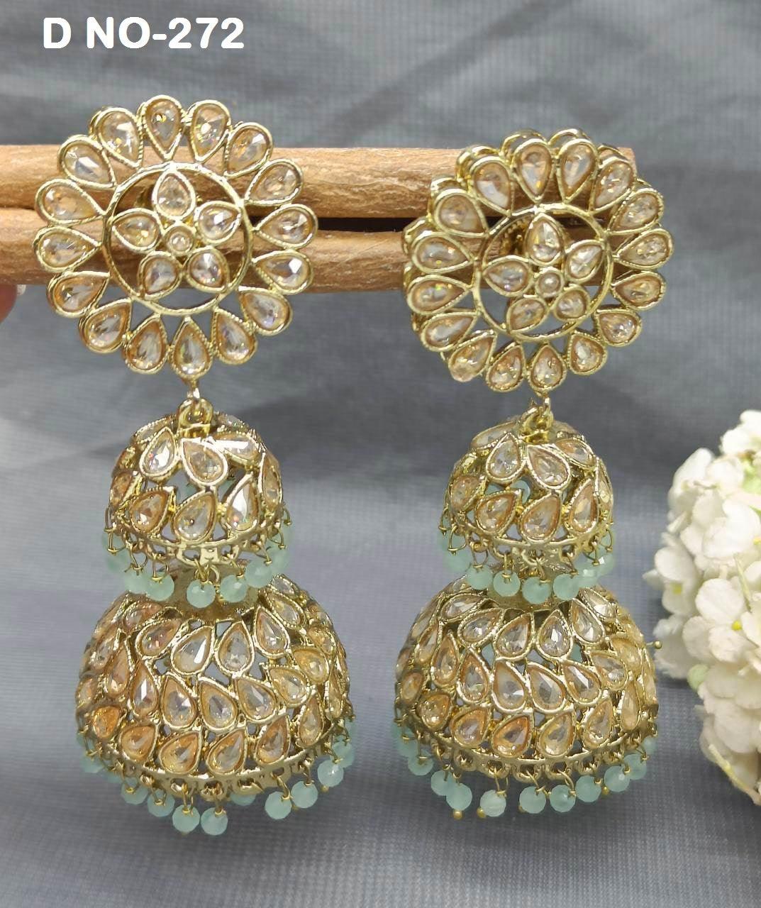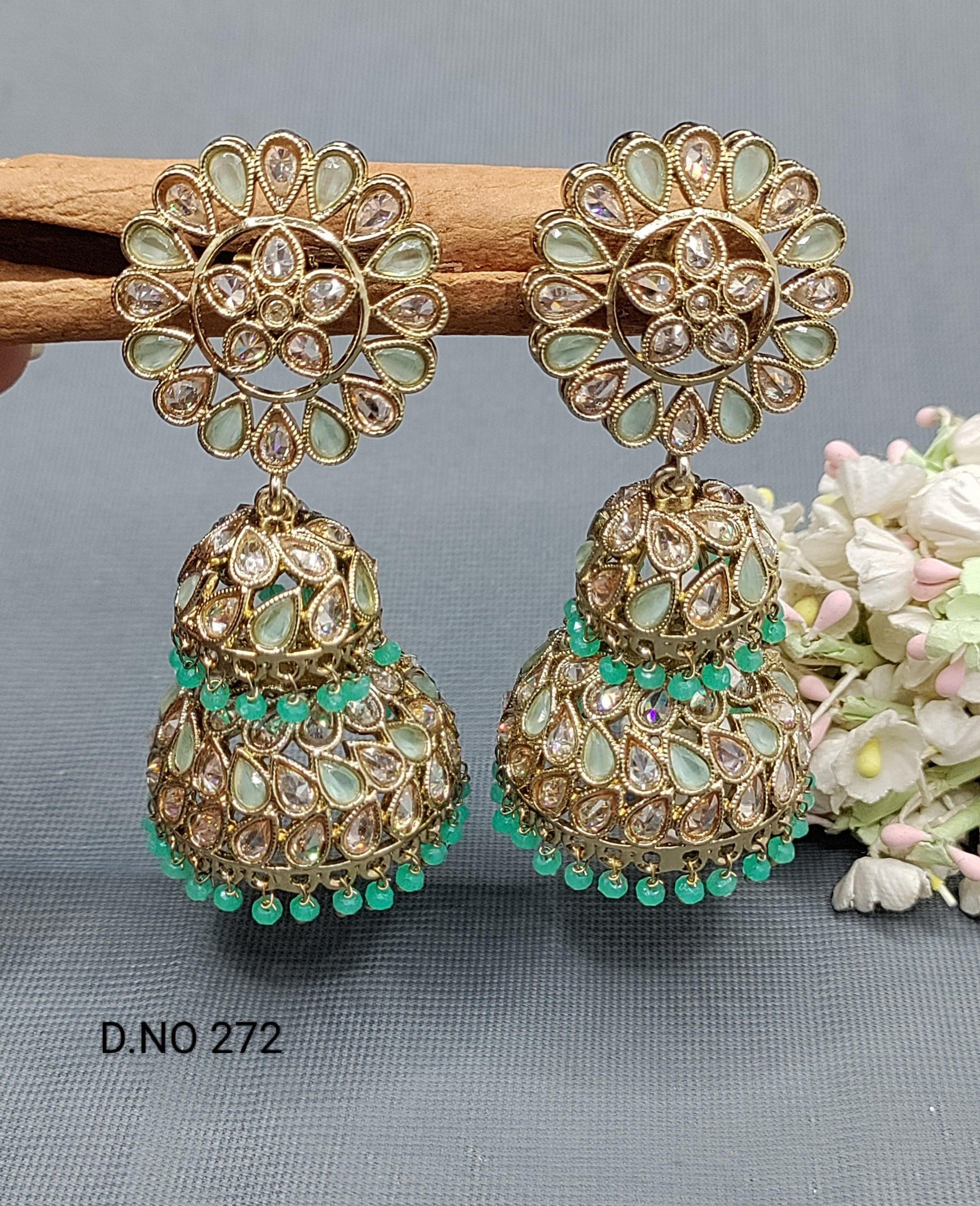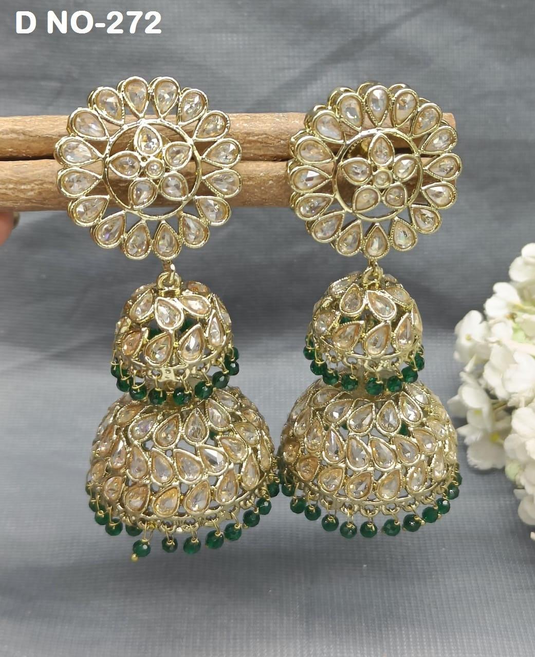 Polki Double Jhumki Mehndi Earring Sku 272 A-7