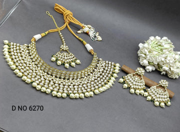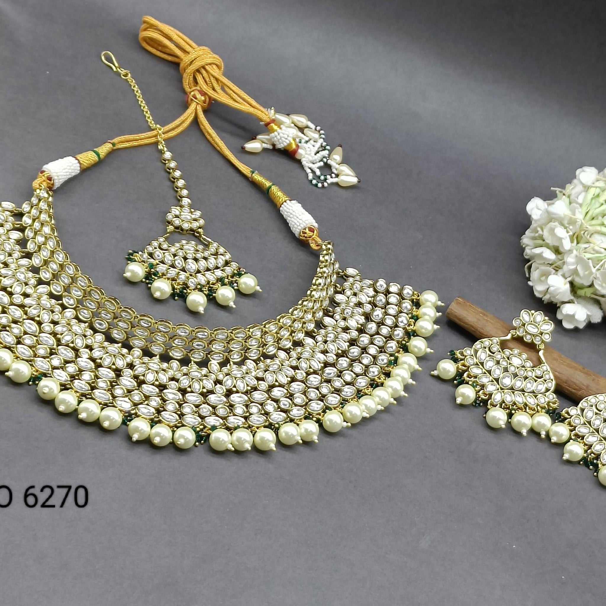 Real Kundan necklace with earrings and Tikka set . pearl bead work. Thread gonda in necklace and Push back in Earings and very light weight.