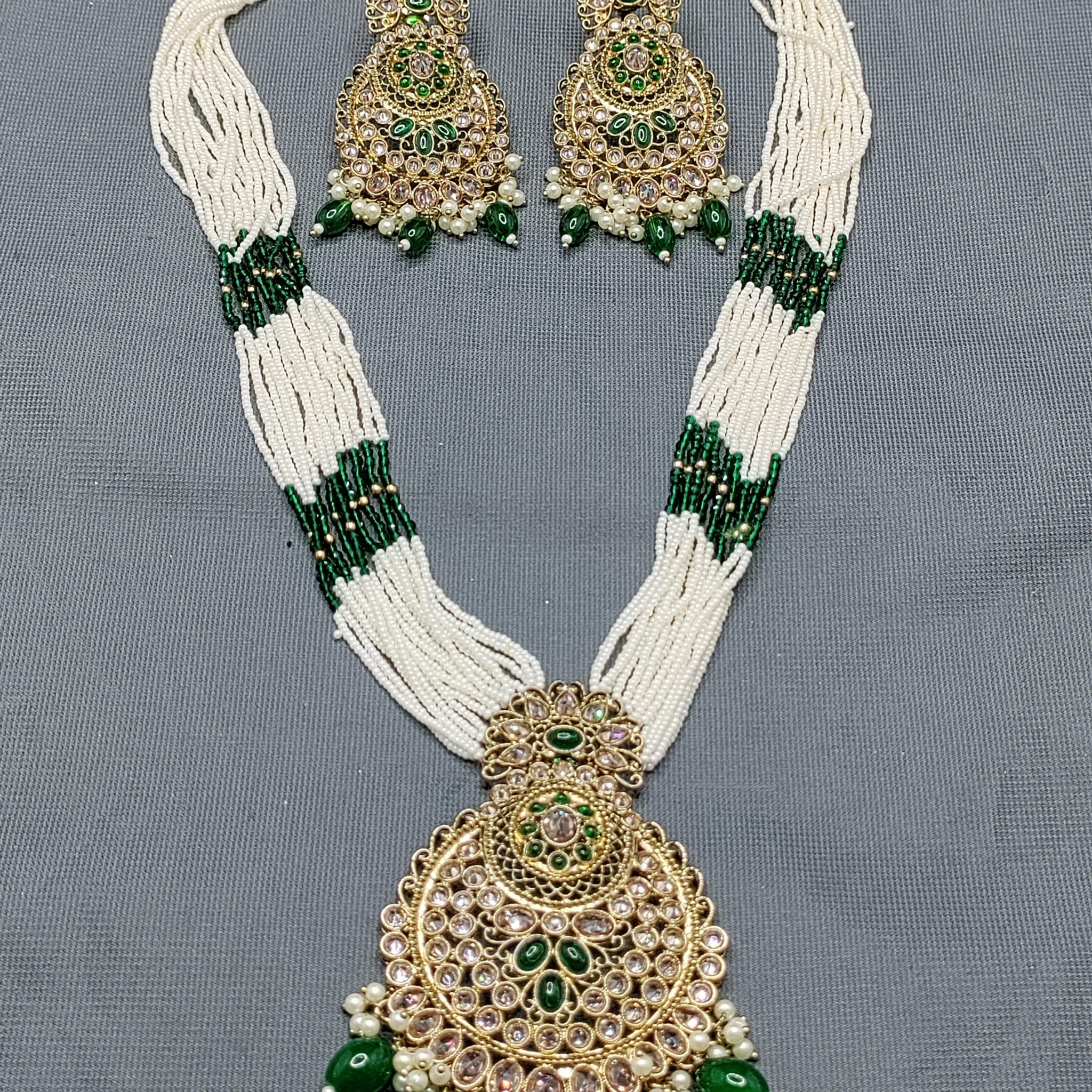 Polki Long Necklace Mehndi Set Sku-5973 B3
