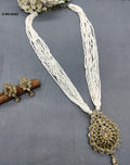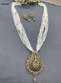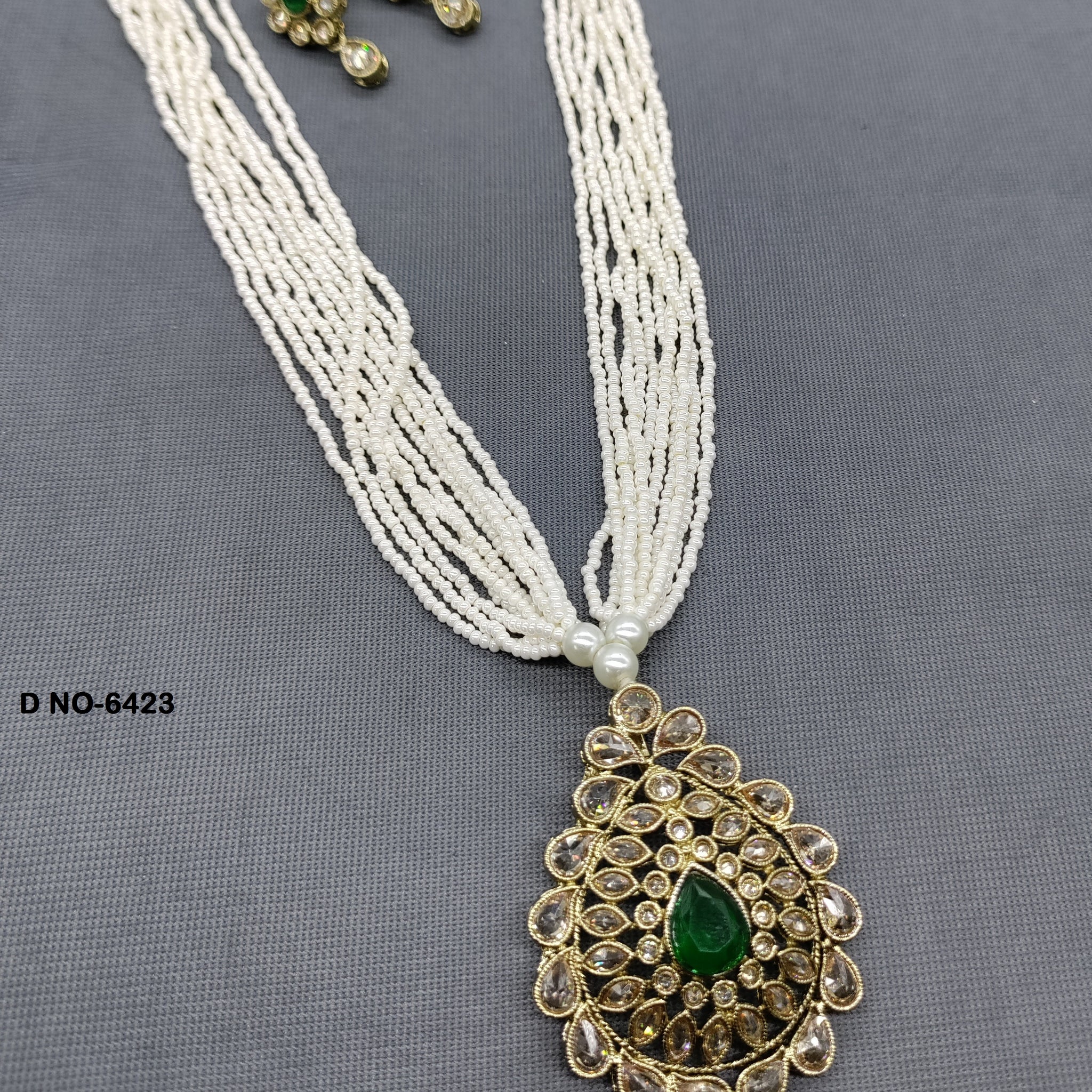 Elevate your look with our Polki long necklace set 6422. Crafted with polki pearls, this elegant necklace adds a touch of sophistication to any outfit. Expertly designed for a classic and timeless appeal, wear it alone or layer with other pieces for a stunning statement.
