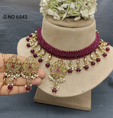 Polki Mehandi Chokar Necklace Set (Sku 6543) is a stunning addition to any jewelry collection. Made with high-quality materials, this elegant necklace and earring set will add a touch of sophistication to any outfit.. Perfect for special occasions.