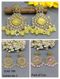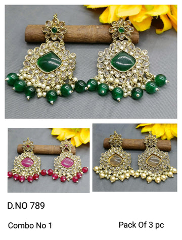 Featuring high-quality Polki Mehandi earrings, this combo Sku 789 is the perfect addition to any jewelry collection. The intricate Mehandi design adds a touch of elegance and the durable Polki material ensures long-lasting wear.( Pack of 3 pc)