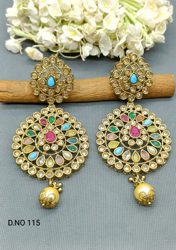 Polki jewellery in golden Mahendi finish with Polki Kundan with beads stones to make these exquisite Earring really special – light in weight & can be paired with almost any outfit perfect accessory for every occasions party & wedding.