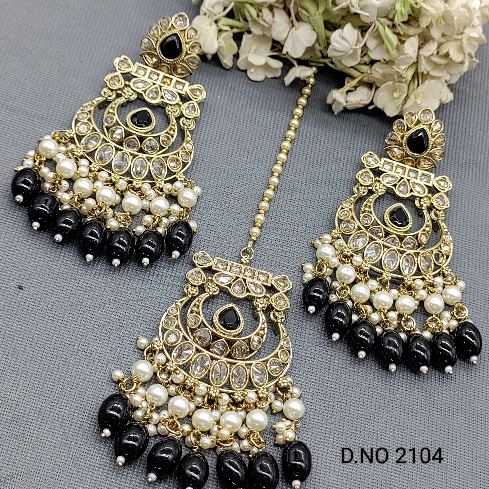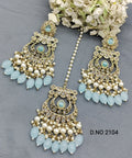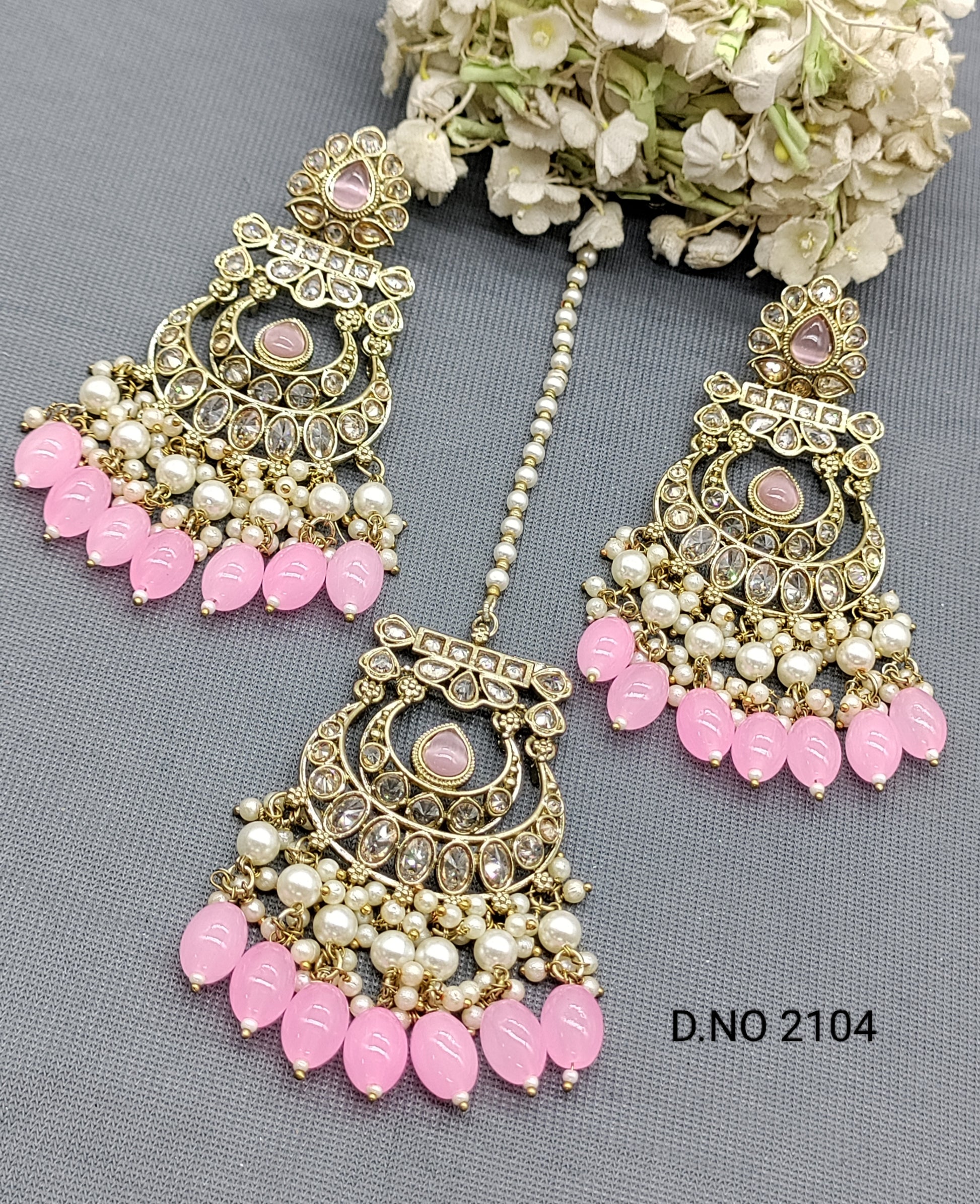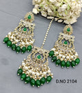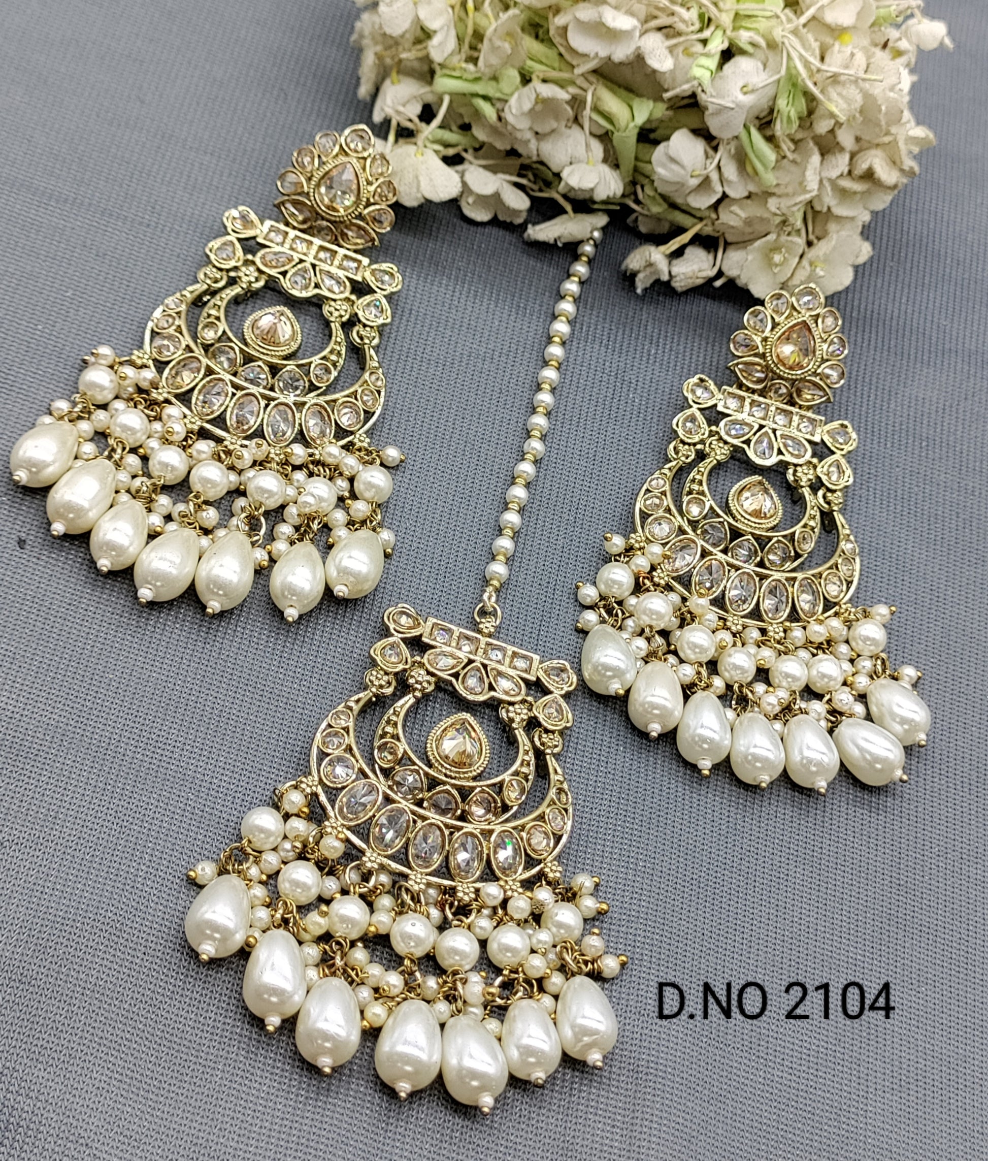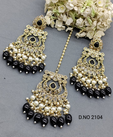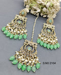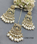 Polki Earring & Tica Mehndi set. Made with exquisite Polki stones and intricate Mehndi designs. The perfect accessory for any occasion.The intricate design and high-quality materials.