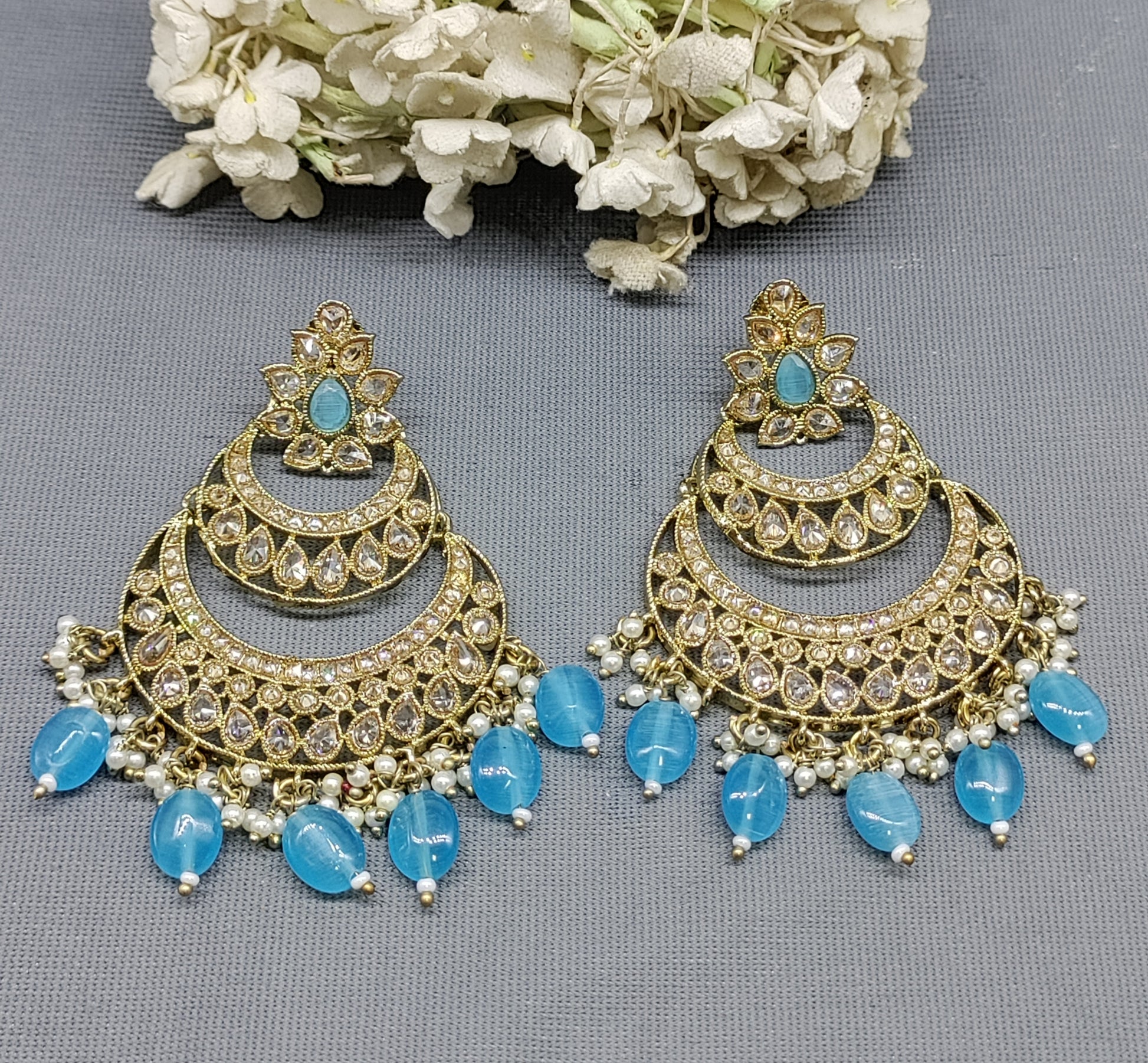 Introducing our elegant Polki Mehandi Earrings, designed with intricate mehandi patterns and sparkling polki stones. Handcrafted with perfection, these earrings are a beautiful addition to any outfit. (pack of 2 Pair)