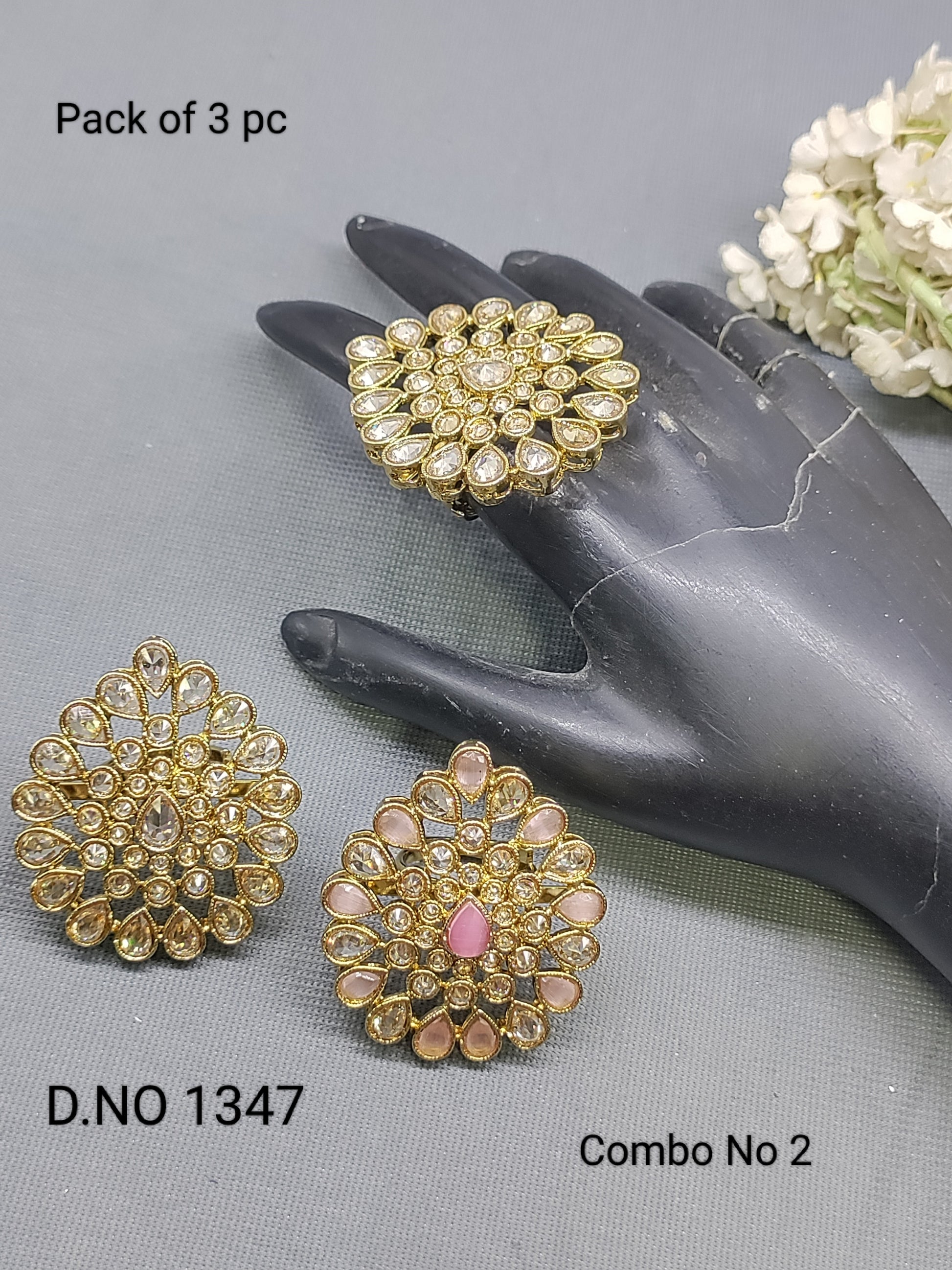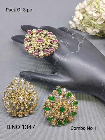 Polki Mehandi Finger Ring Combo Sku 1347 E1