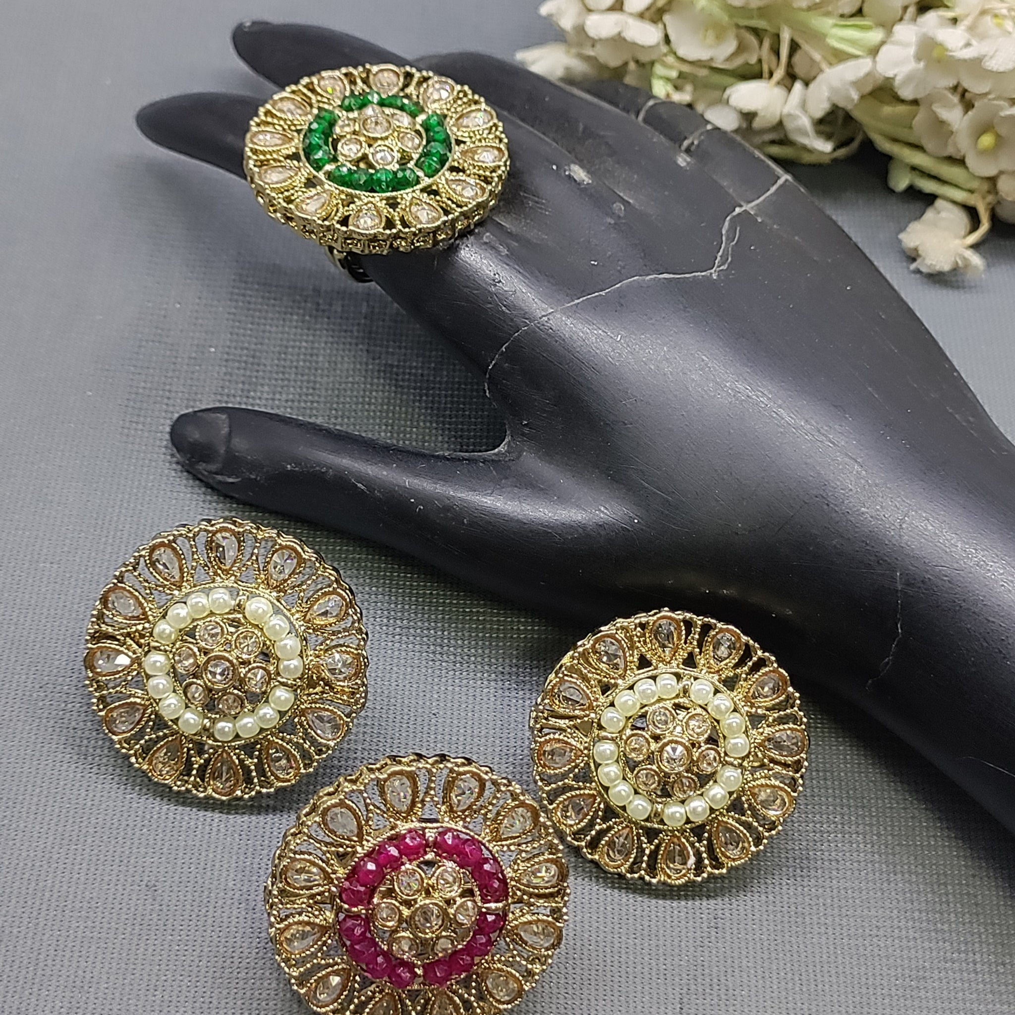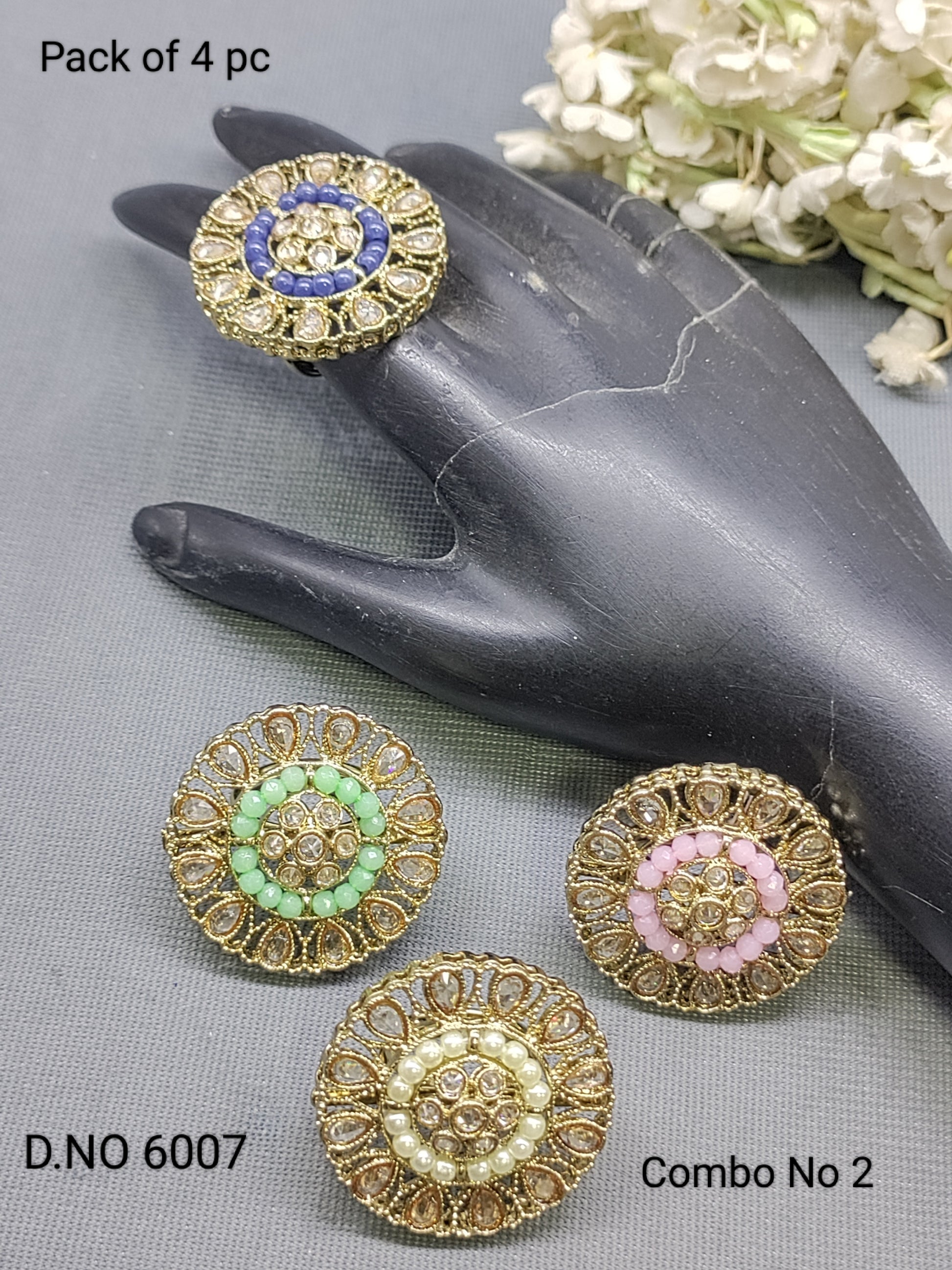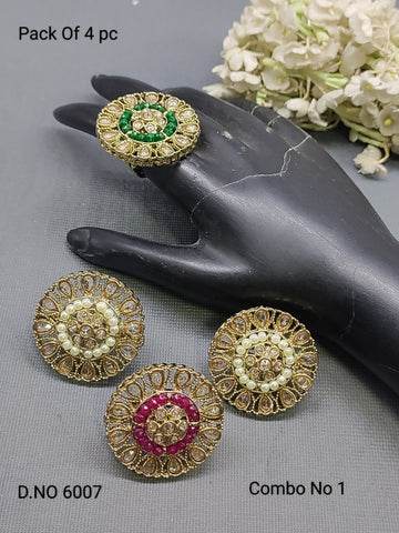Polki Mehandi Finger Ring Combo Sku 6007 E1