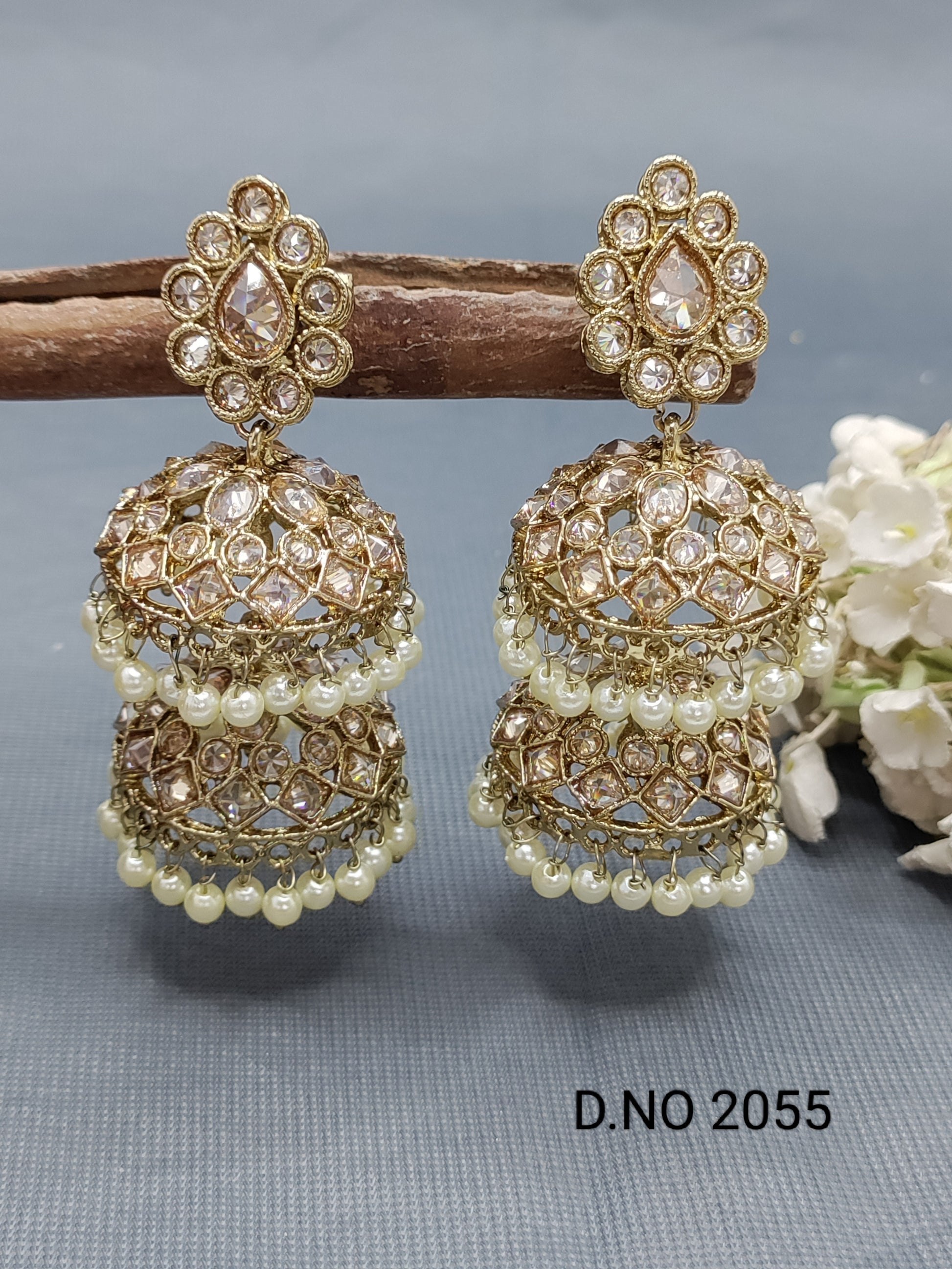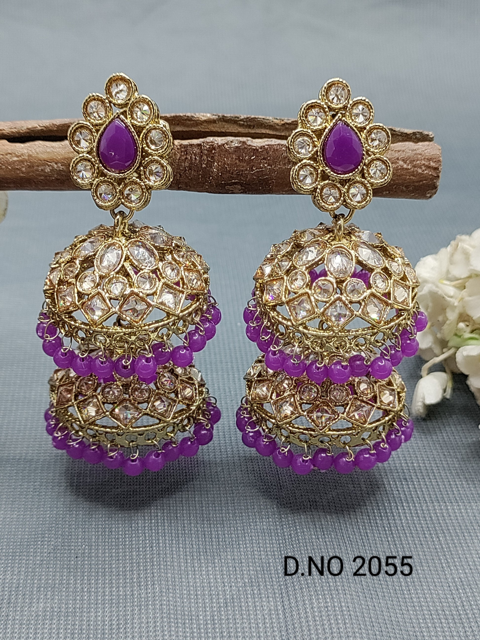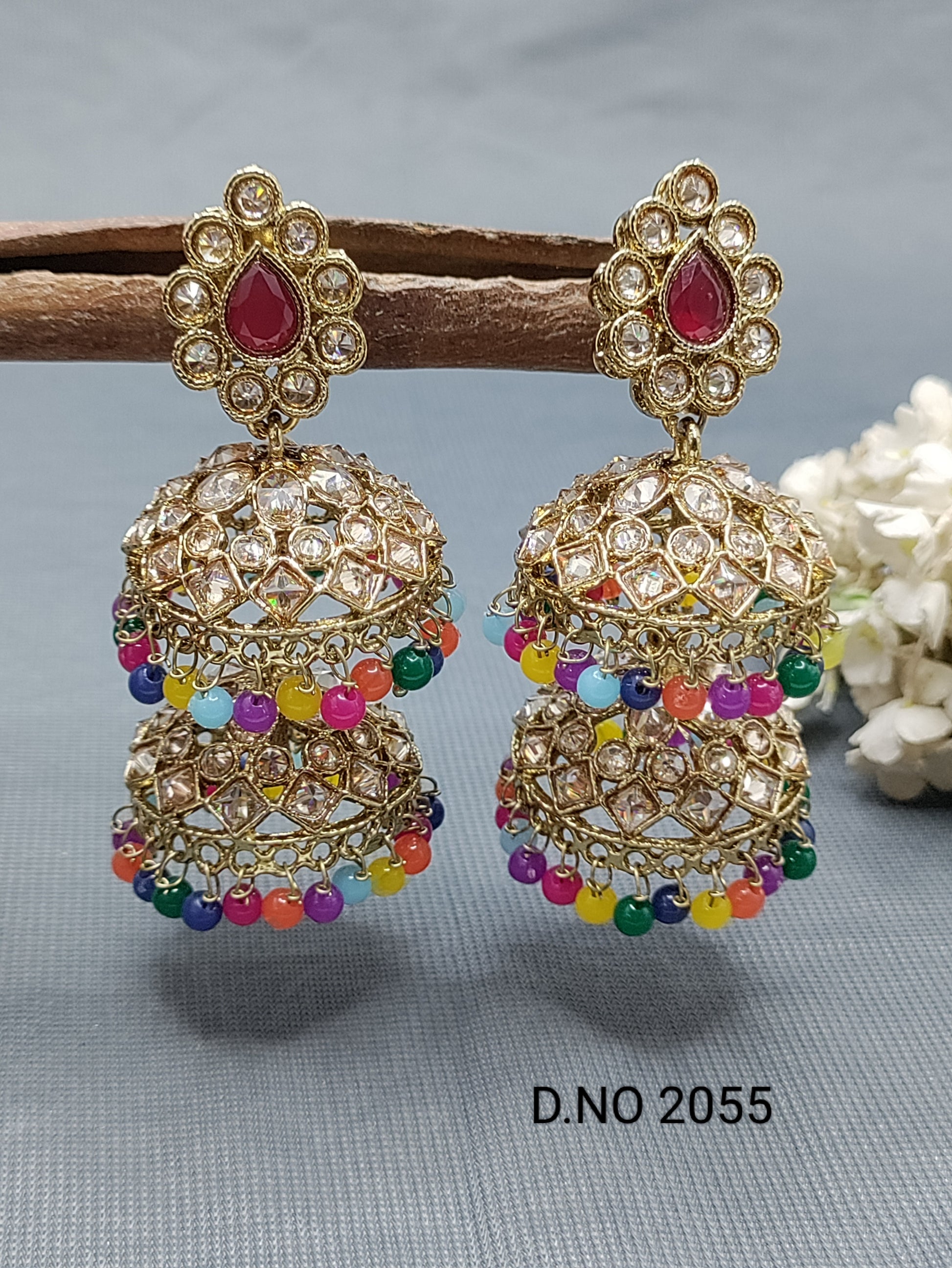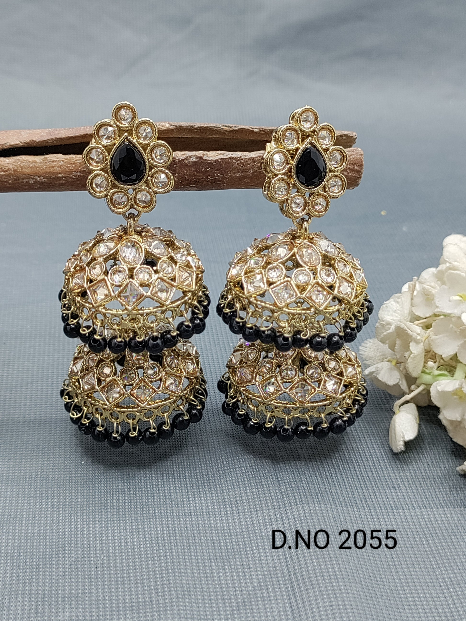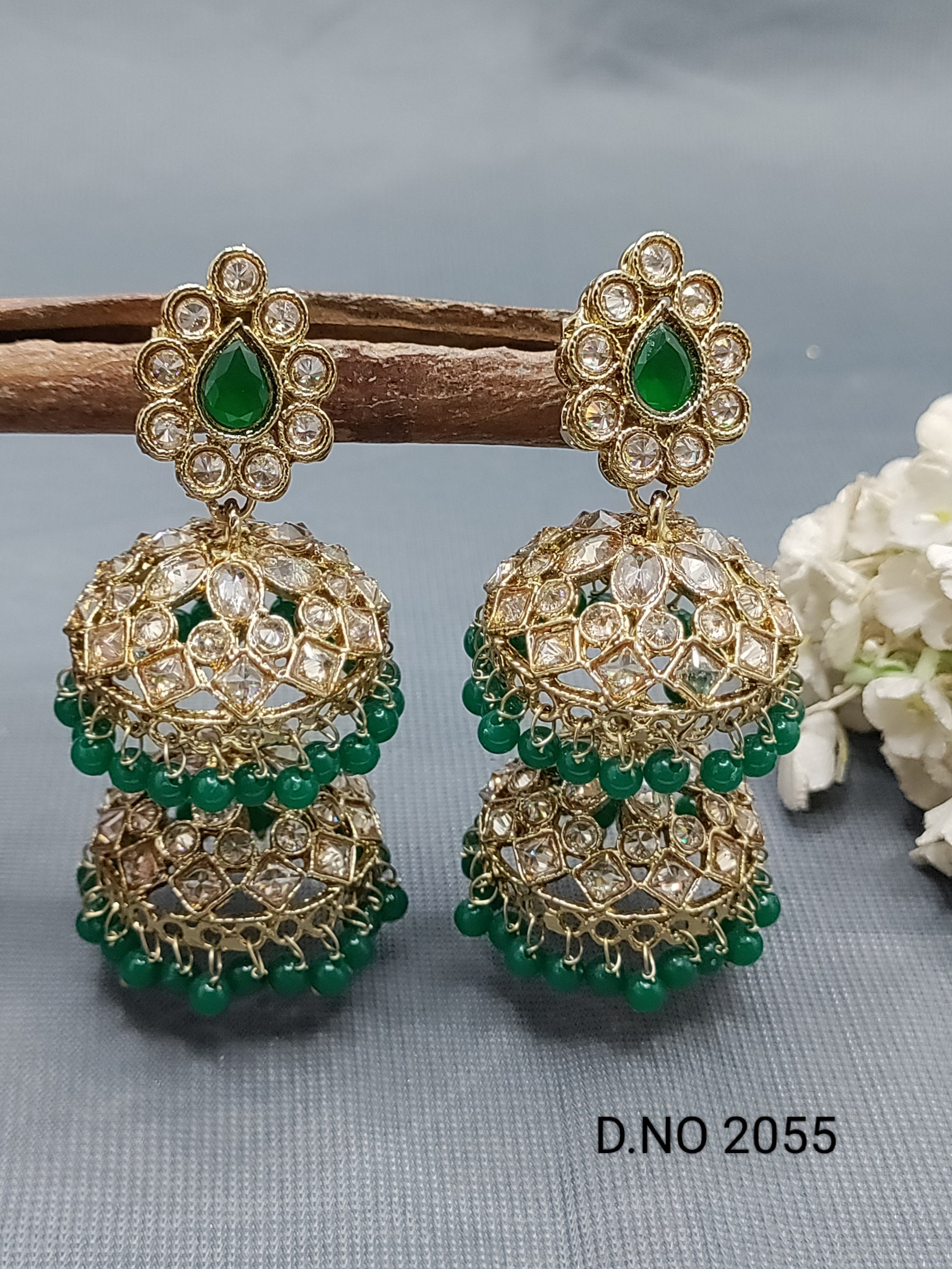Polki Mehandi Jhumki Earring Sku 2055 A-7