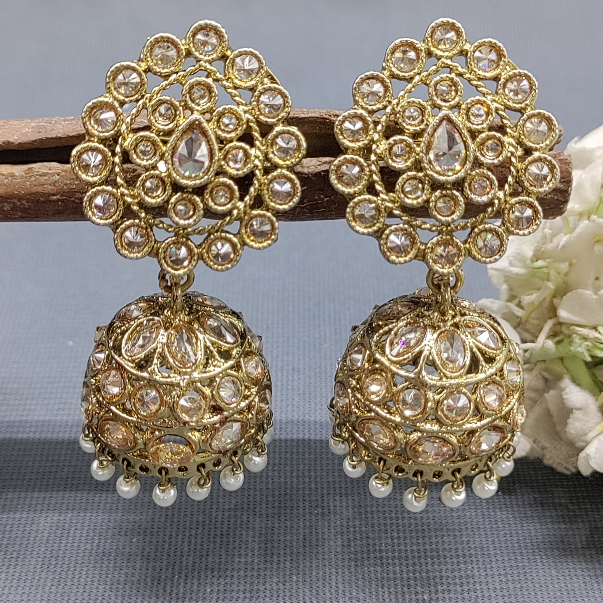 Expertly crafted with stunning Polki stones, jhumki earrings are a must-have for any jewelry collection. The intricate design and high-quality materials.