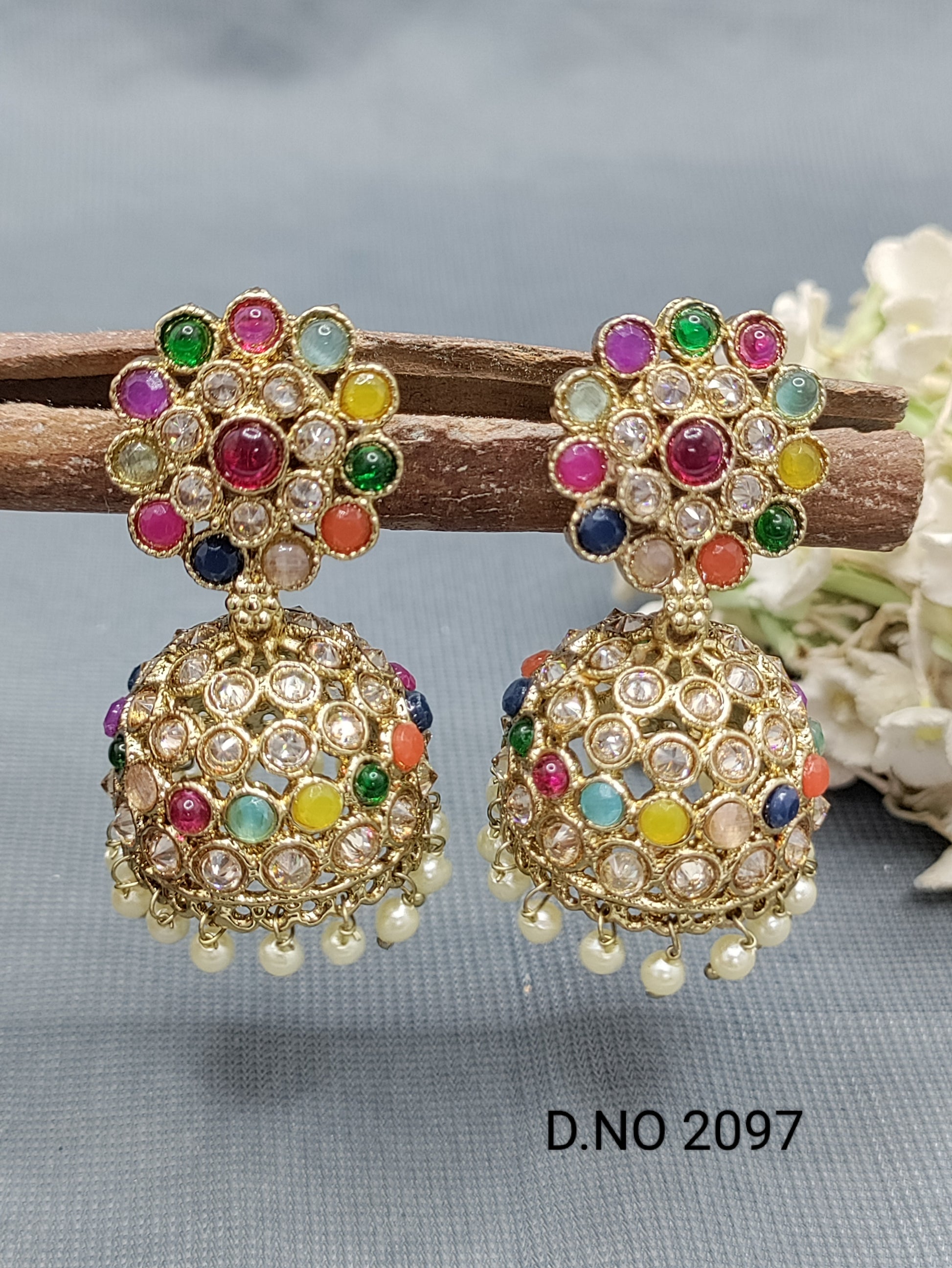 Polki Mehandi Jhumki Earring Sku 2097 A6