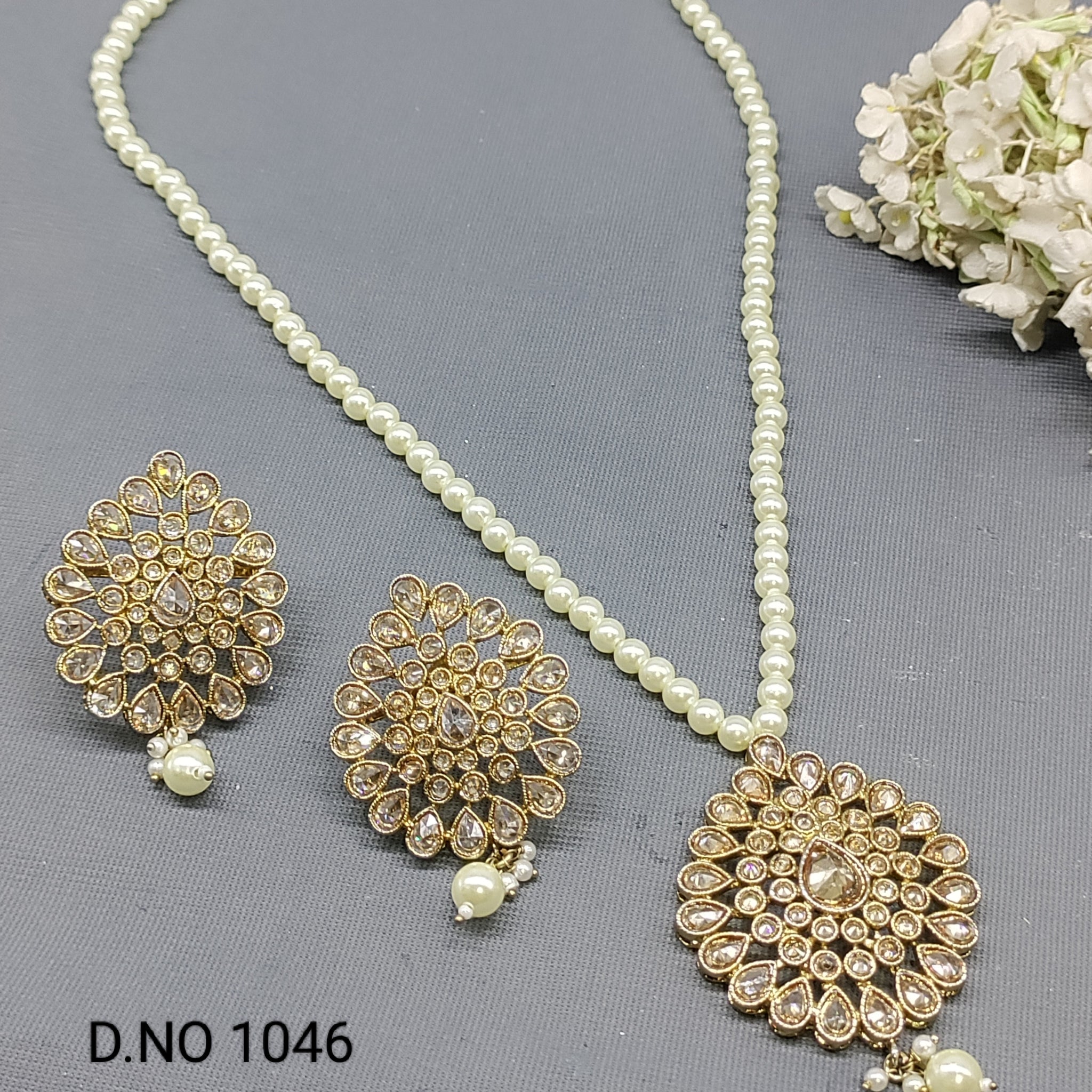 This Polki Mehandi long Mala Necklace Sku 1046 features intricately designed Polki Mehandi beads. Crafted with precision and elegance, this necklace is a perfect addition to your jewelry collection.