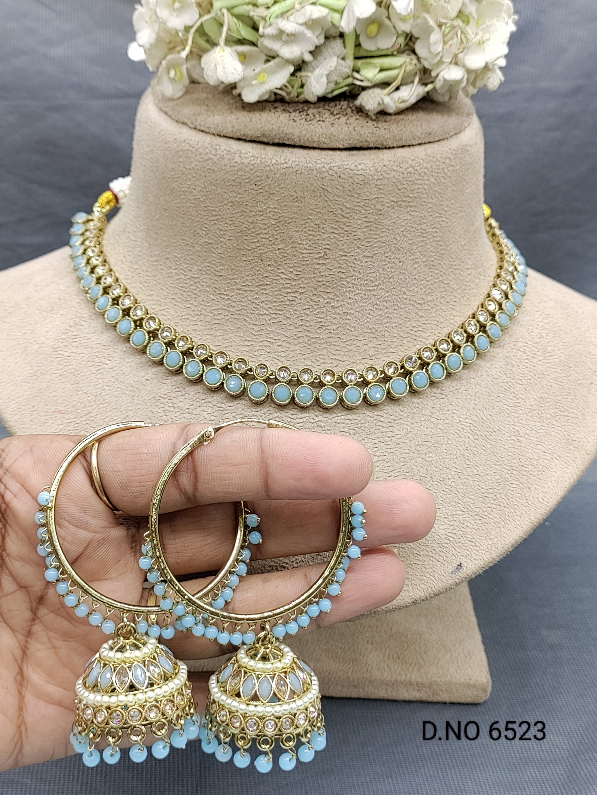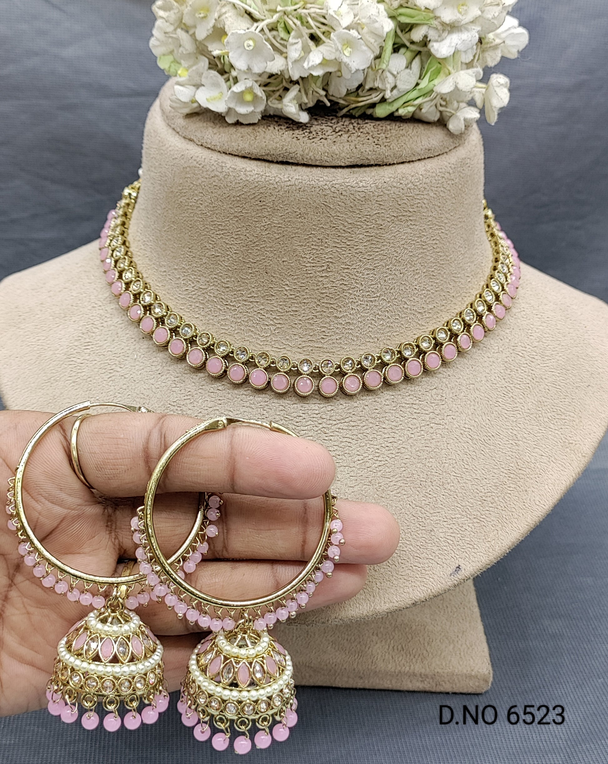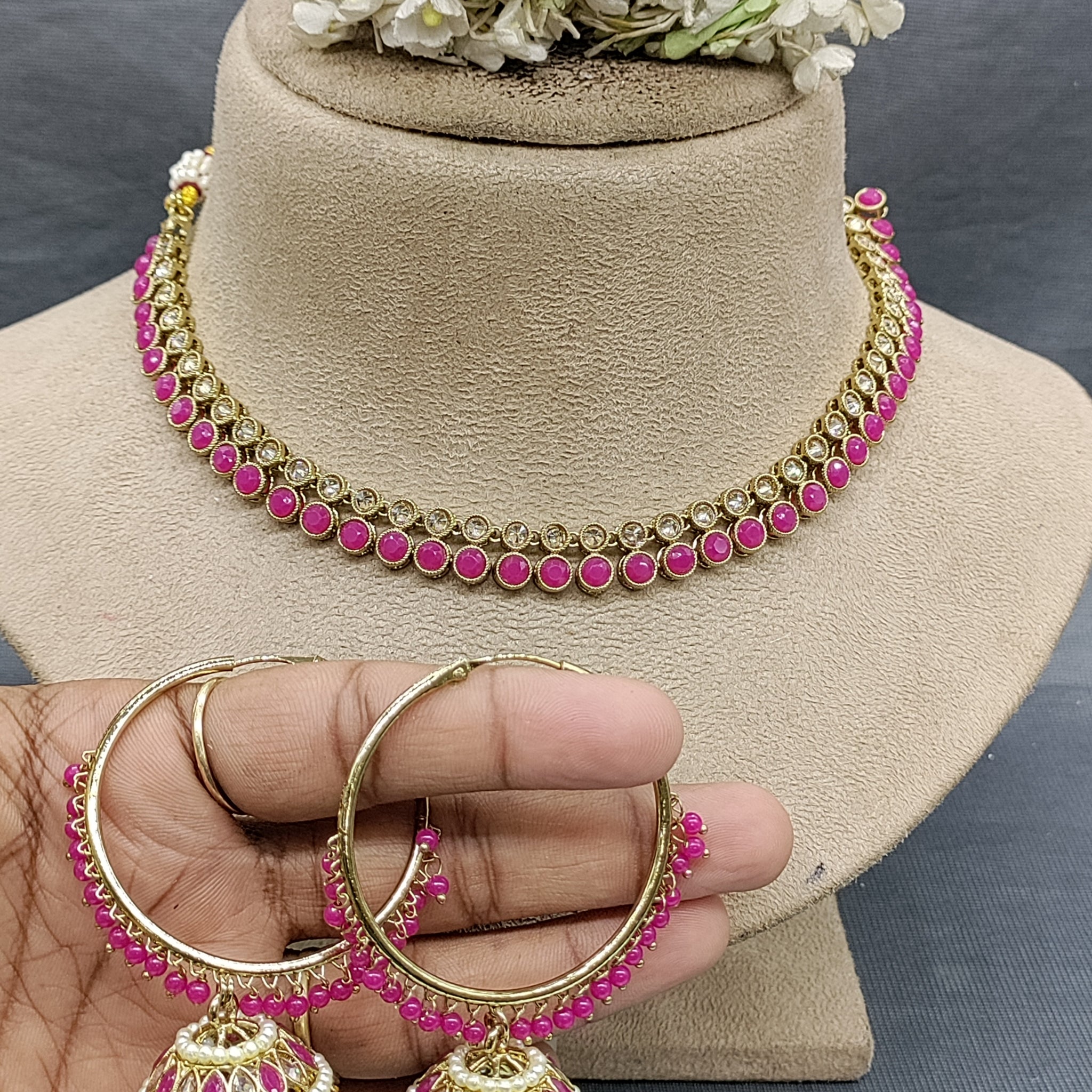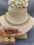 Polki Mehandi Necklace Set. Handcrafted with precision, this necklace features exquisite Polki Mehandi detailing, adding a touch of South Asian charm to your look. Made from high-quality materials, it's perfect for special occasions or dressing up your everyday attire.