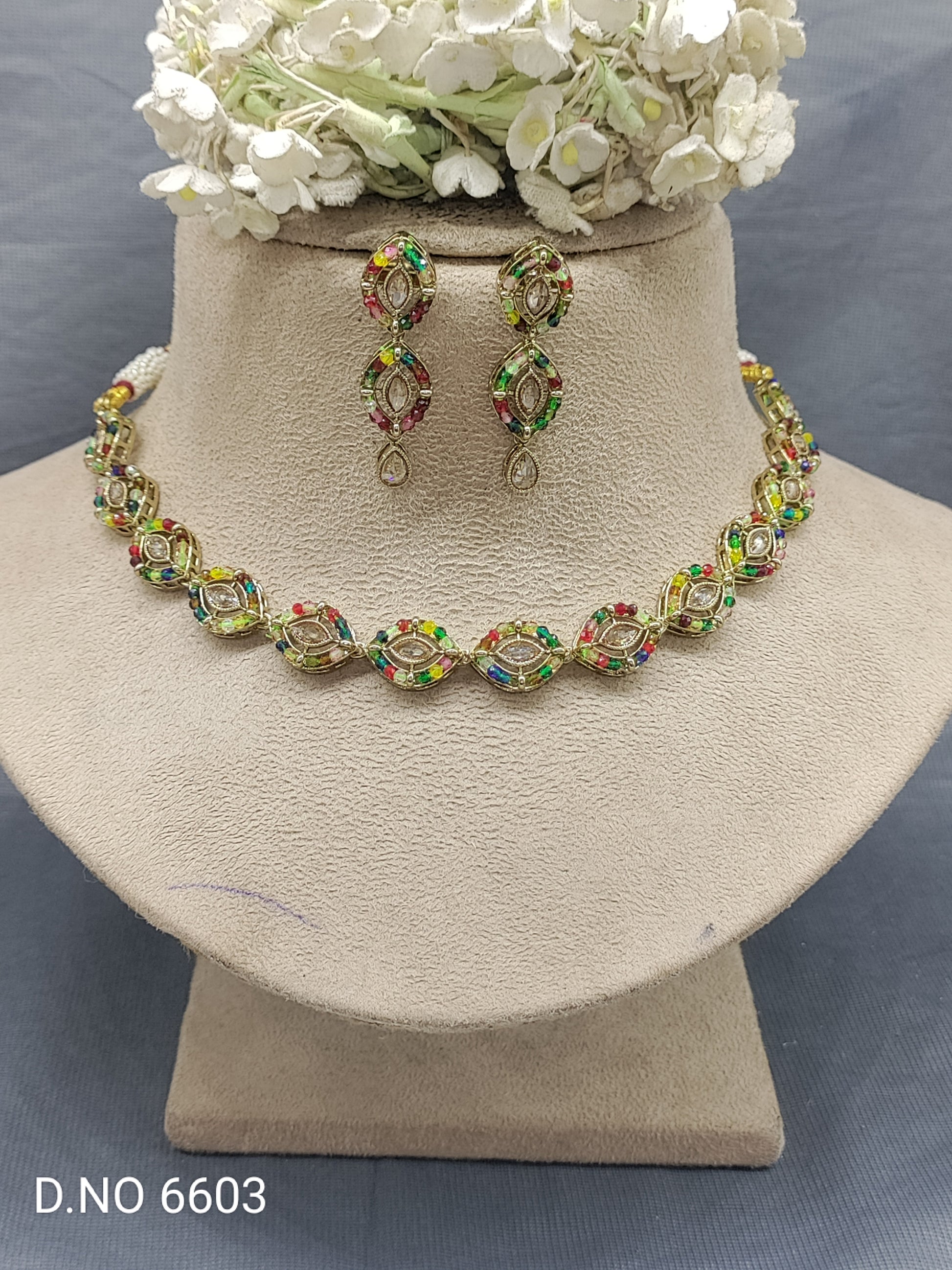 Polki Mehandi Necklace Set Sku 6603 B-9