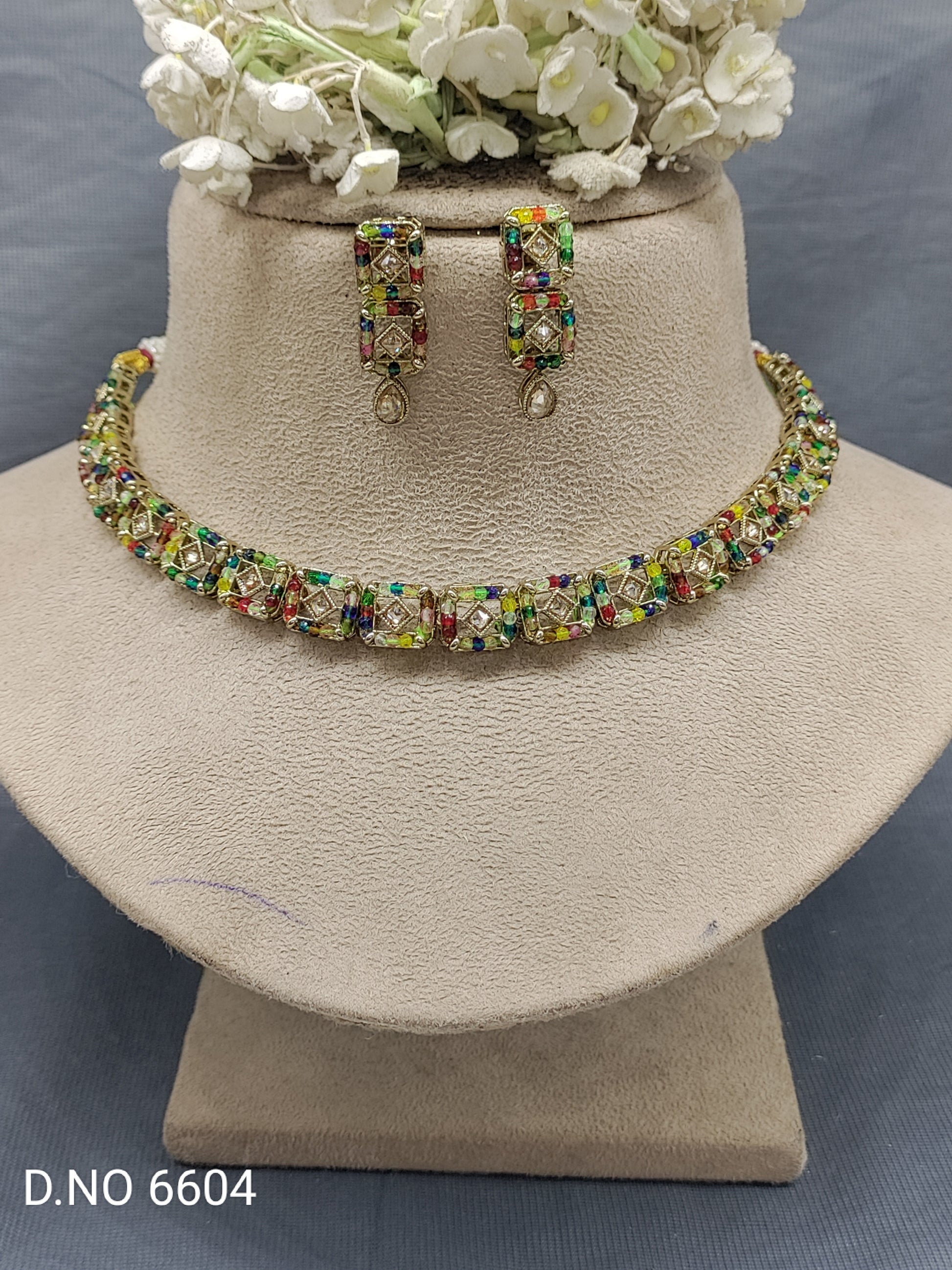 Polki Mehandi Necklace Set Sku 6604 B-9