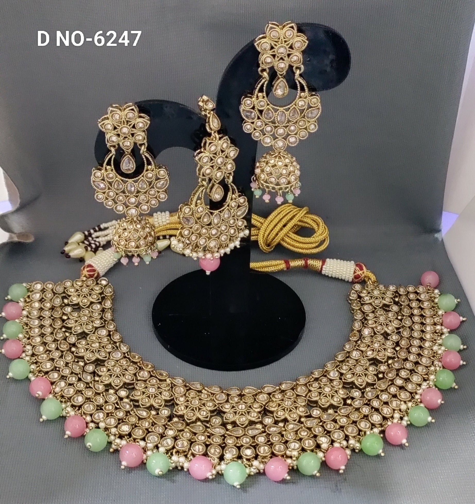 Polki jewellery in mehandi finish with Polki Kundan with beads stones to make these exquisite necklace really special – light in weight & can be paired with almost any outfit perfect accessory for every occasions party & wedding