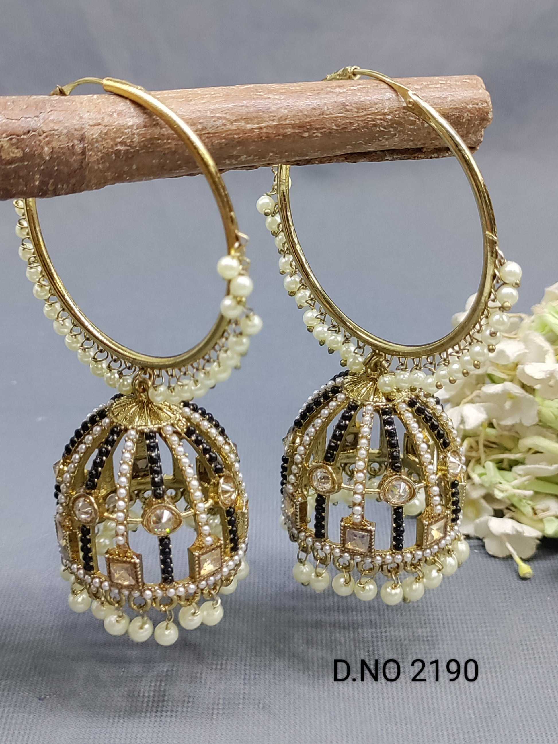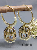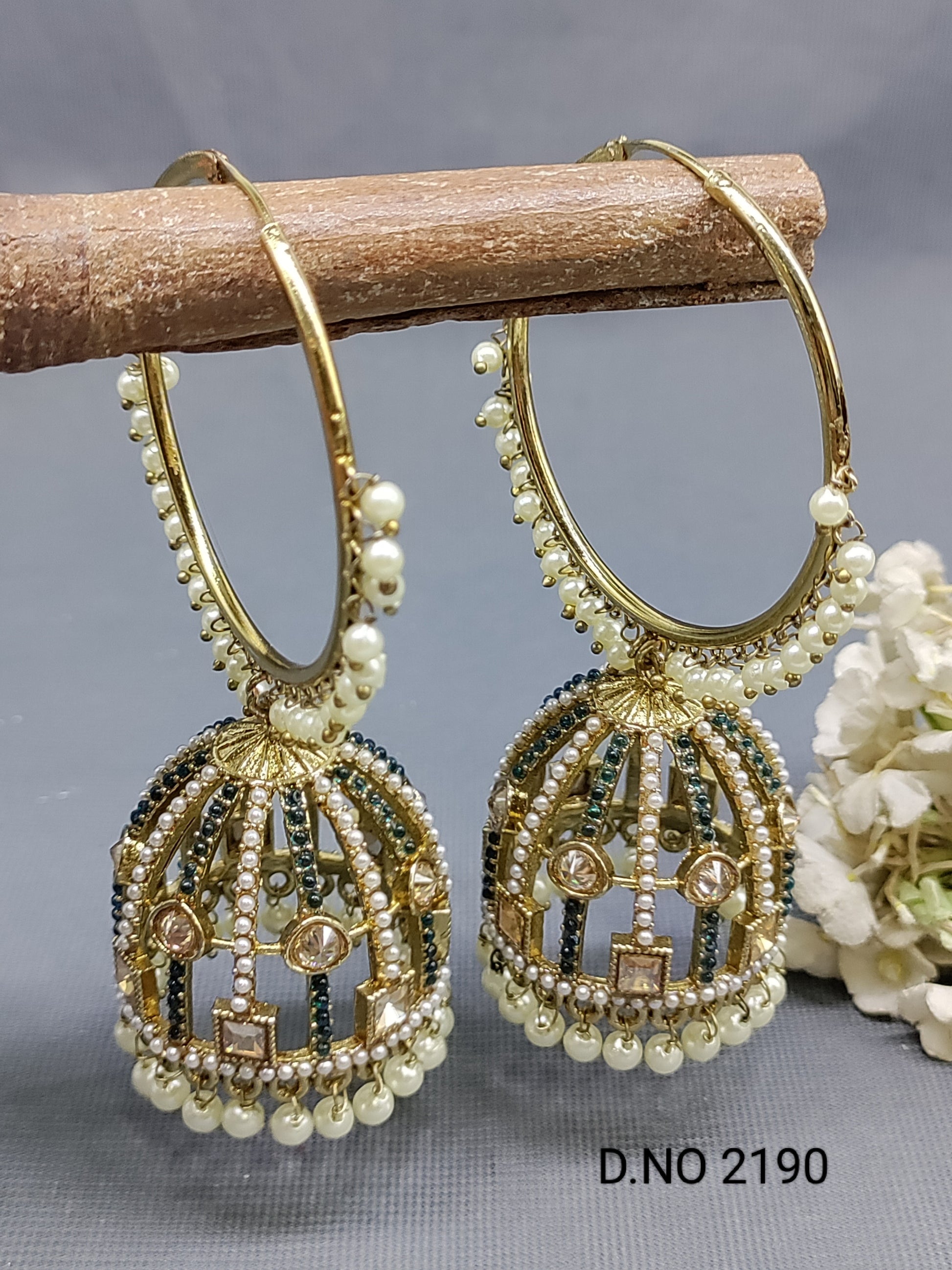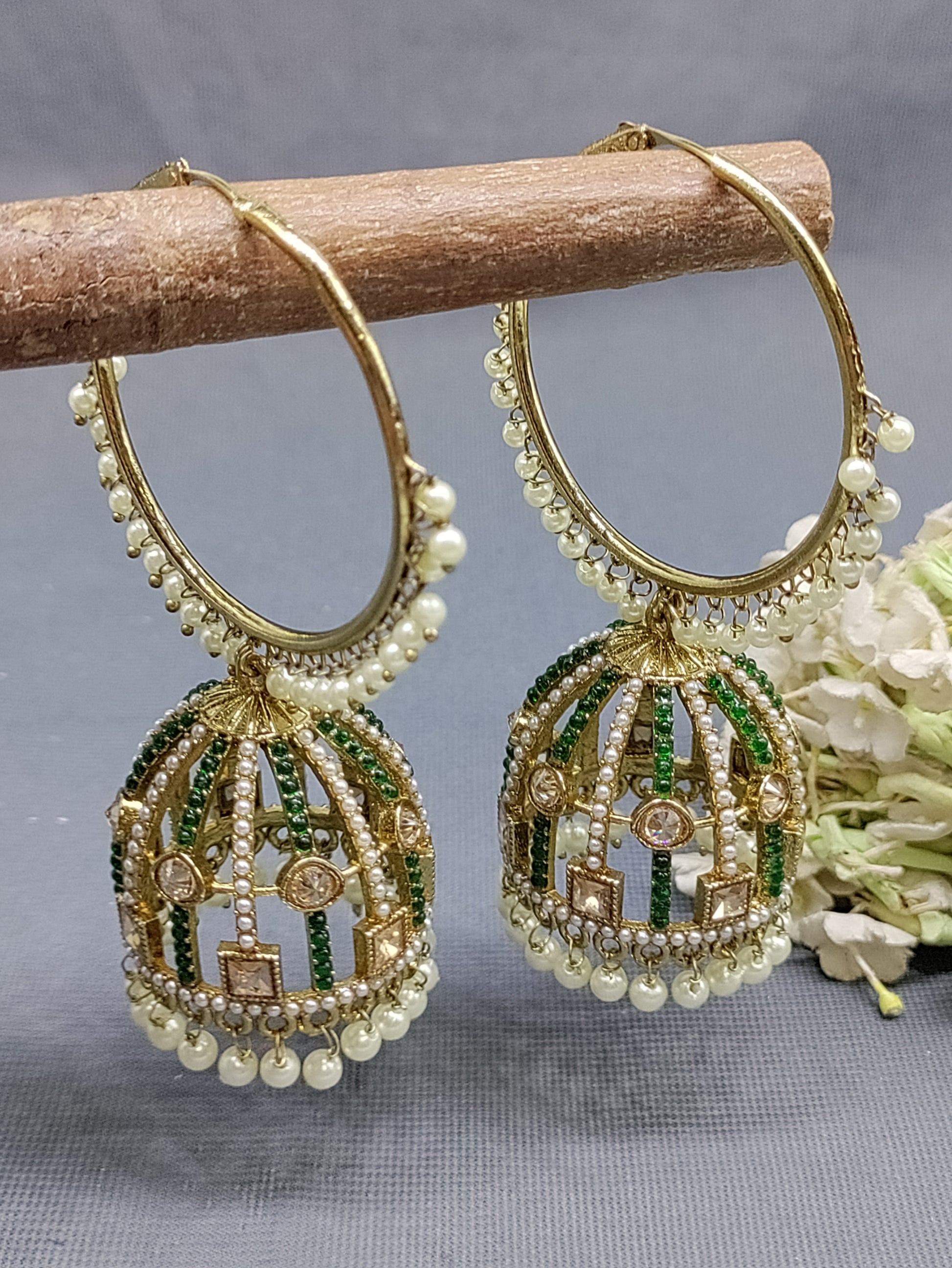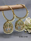 Polki Mehandi Pearl Bali Jhumki Earrings Sku 2190 E1