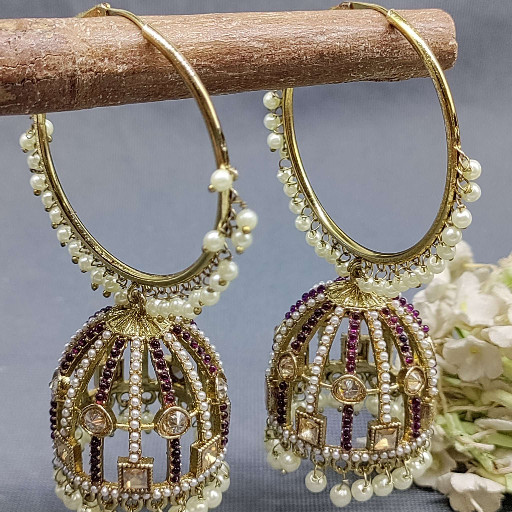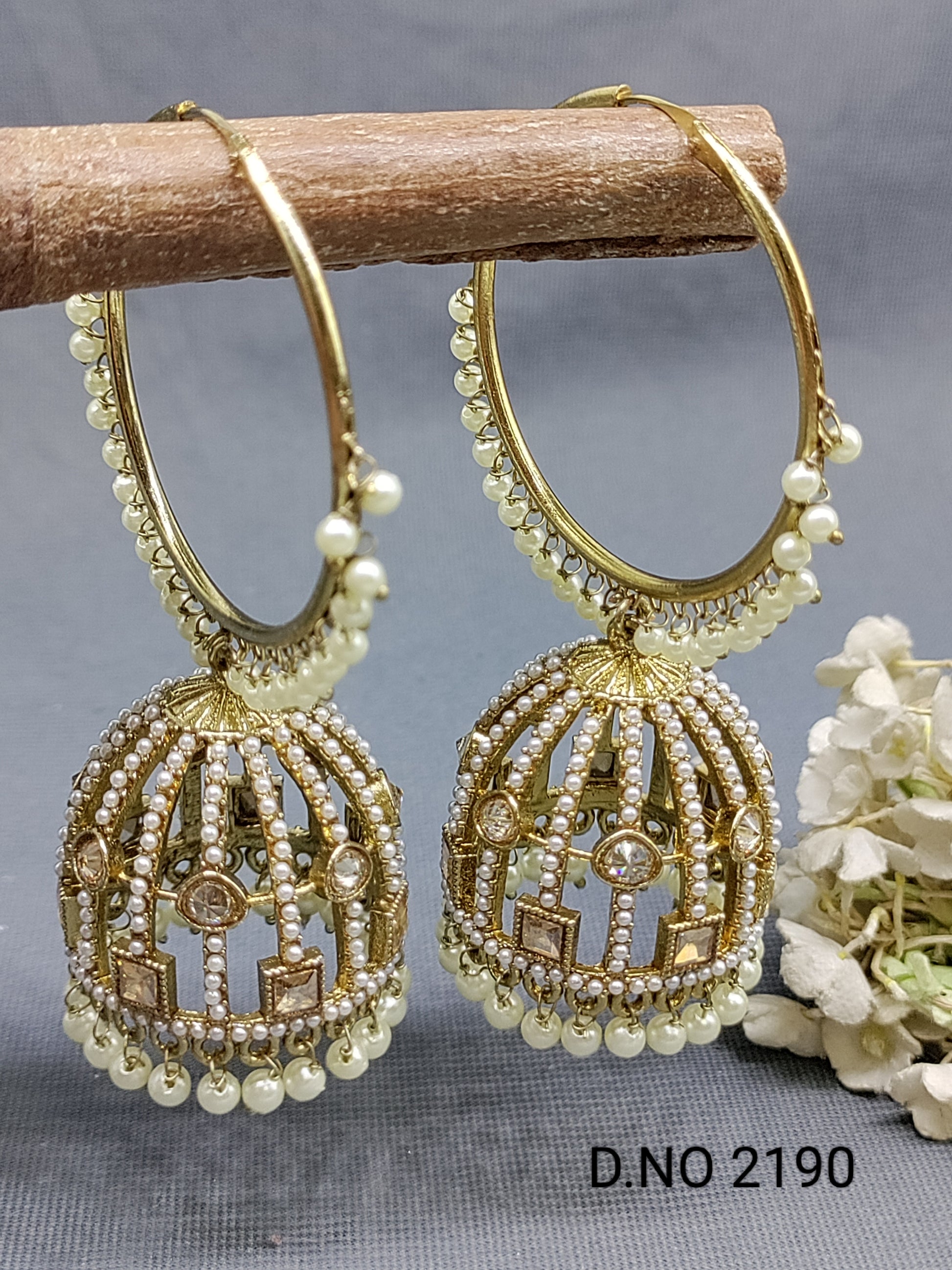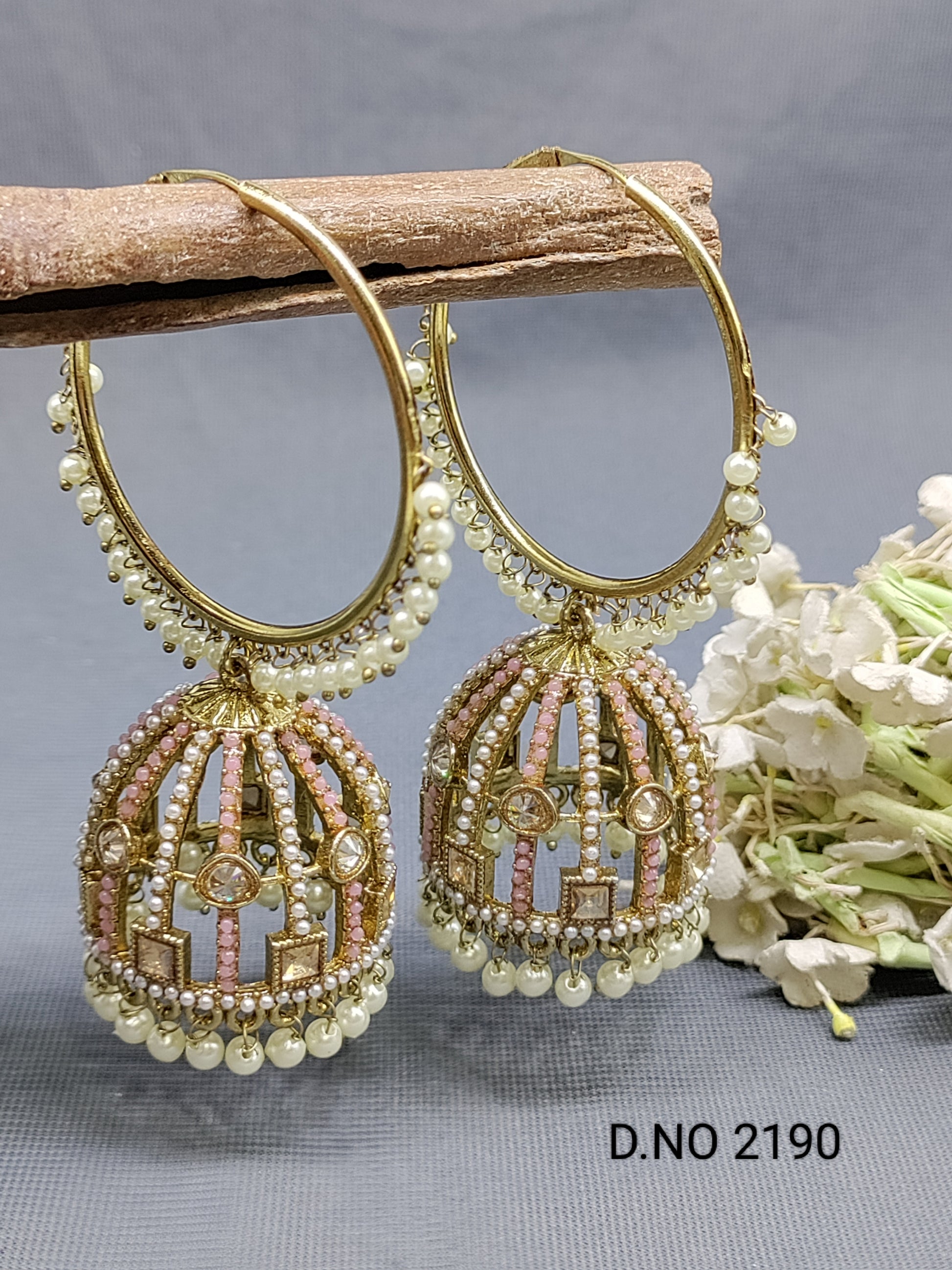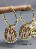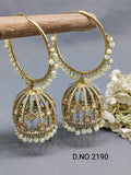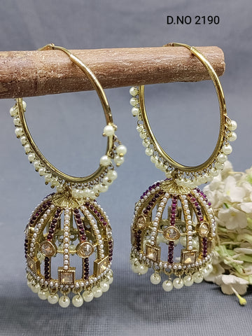 Polki Mehandi Pearl Bali Jhumki Earrings Sku 2190 E1