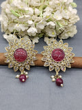 Mehandi polished Tops & Stud Earrings made with uncut polki stone. crafted with unique pearl work and latakan. these earrings are a unique addition to any jewelry collection
