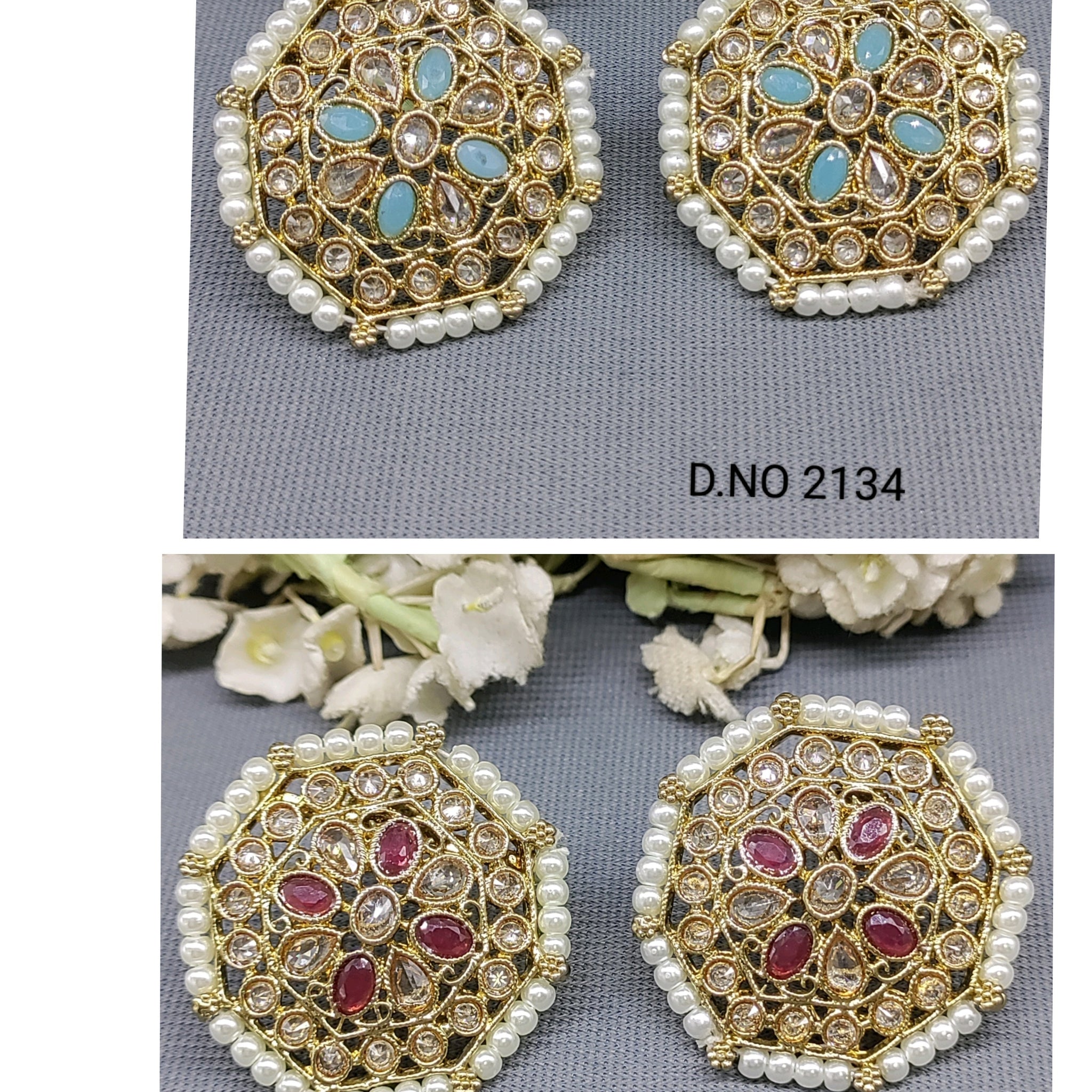 Polki Mehandi Tops & Stud Earrings Combo Sku 2134-A/E1