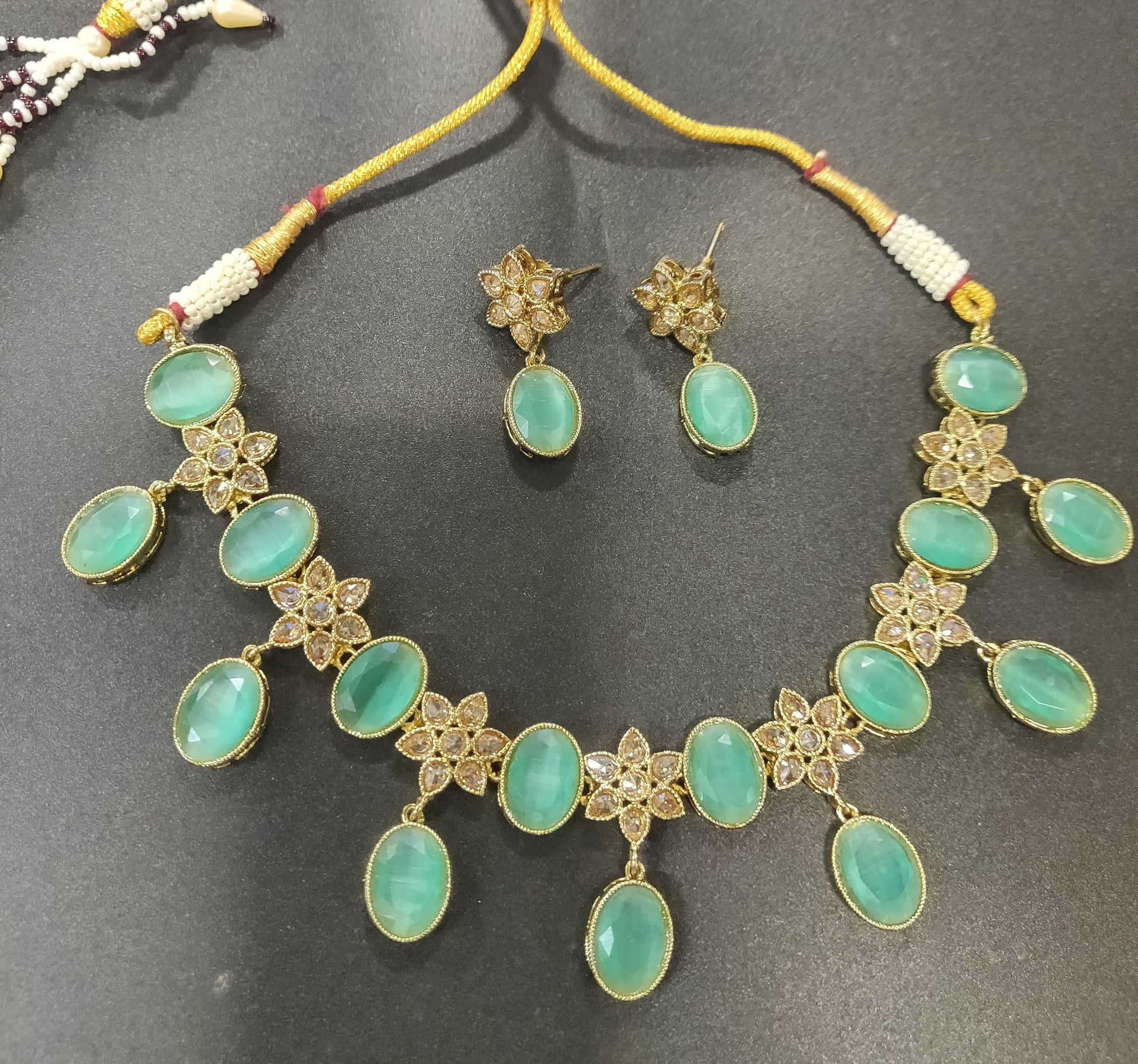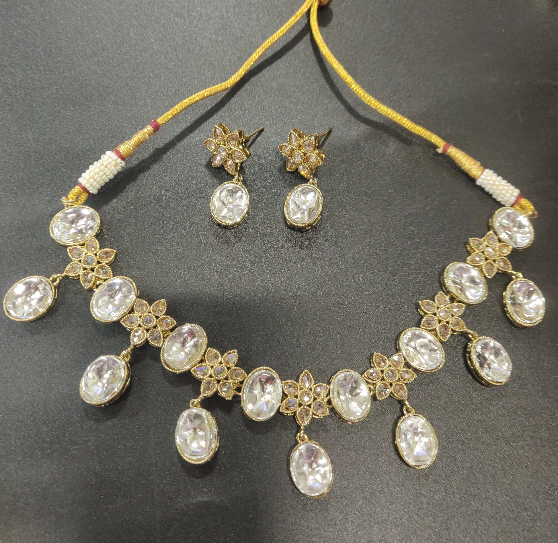 Polki jewellery in golden finish with Polki Kundan with beads stones to make these exquisite necklace really special – light in weight & can be paired with almost any outfit perfect accessory for every occasions party & wedding.