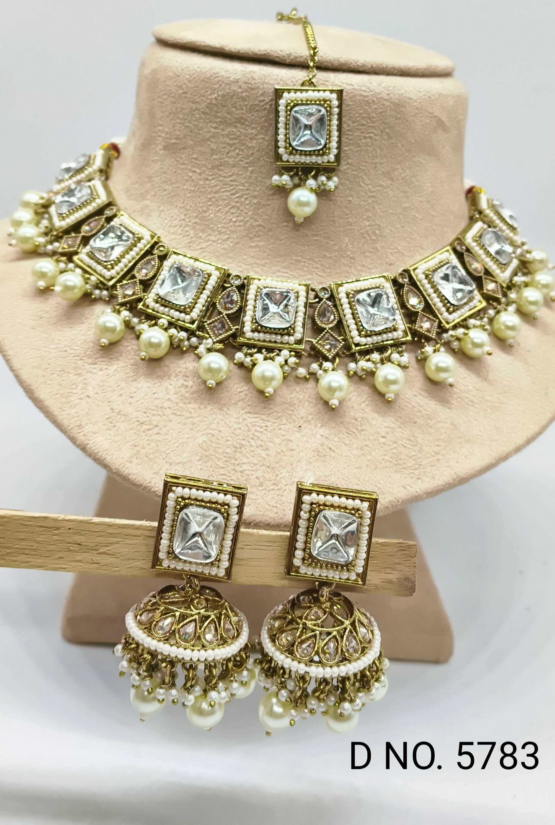 Polki jewellery in golden finish with Polki Kundan with beads stones to make these exquisite necklace really special – light in weight & can be paired with almost any outfit perfect accessory for every occasions party & wedding.