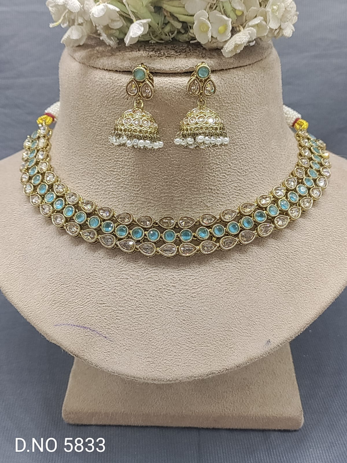 Polki Necklace Mehndi Set Sku-5833 B7