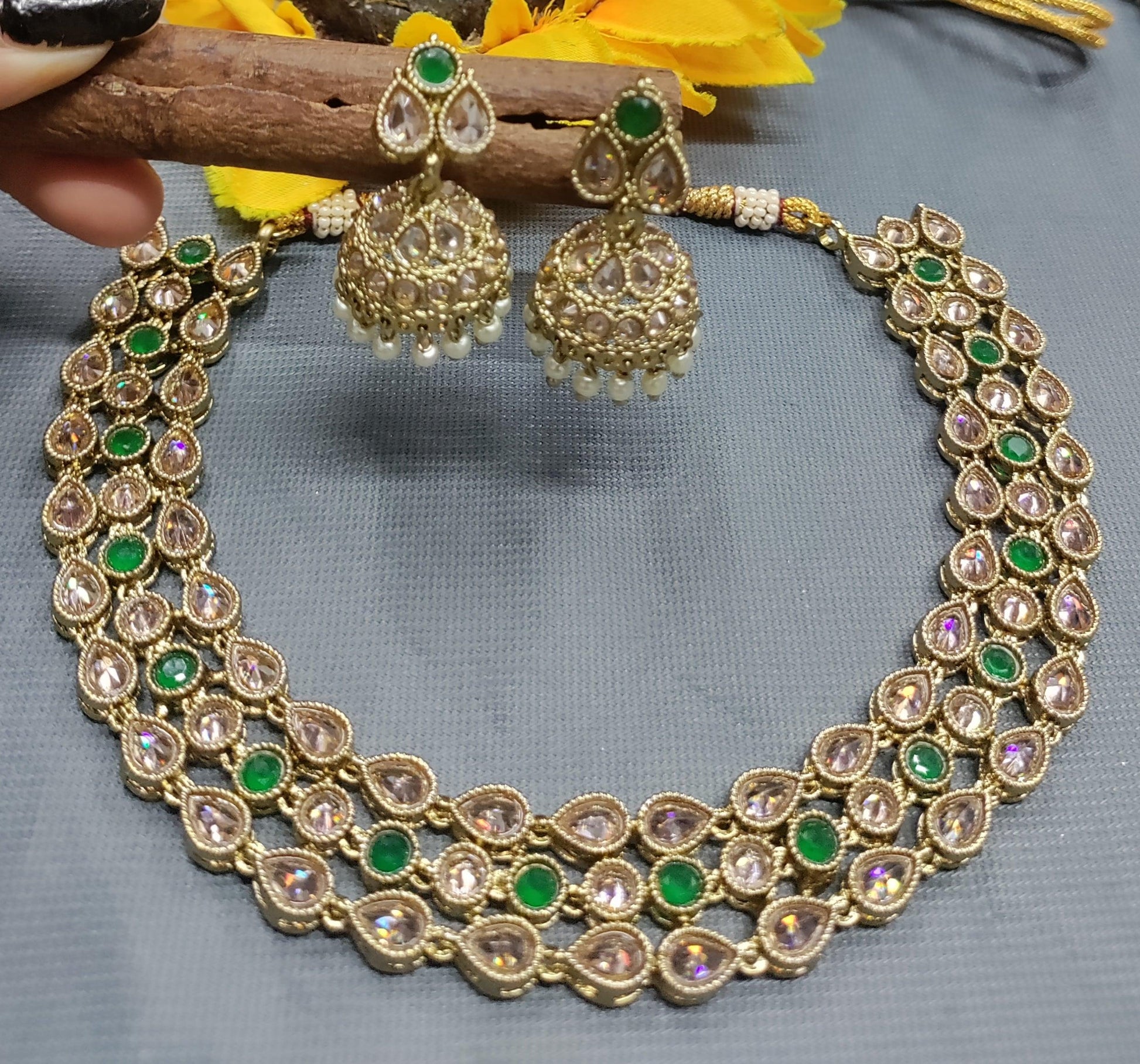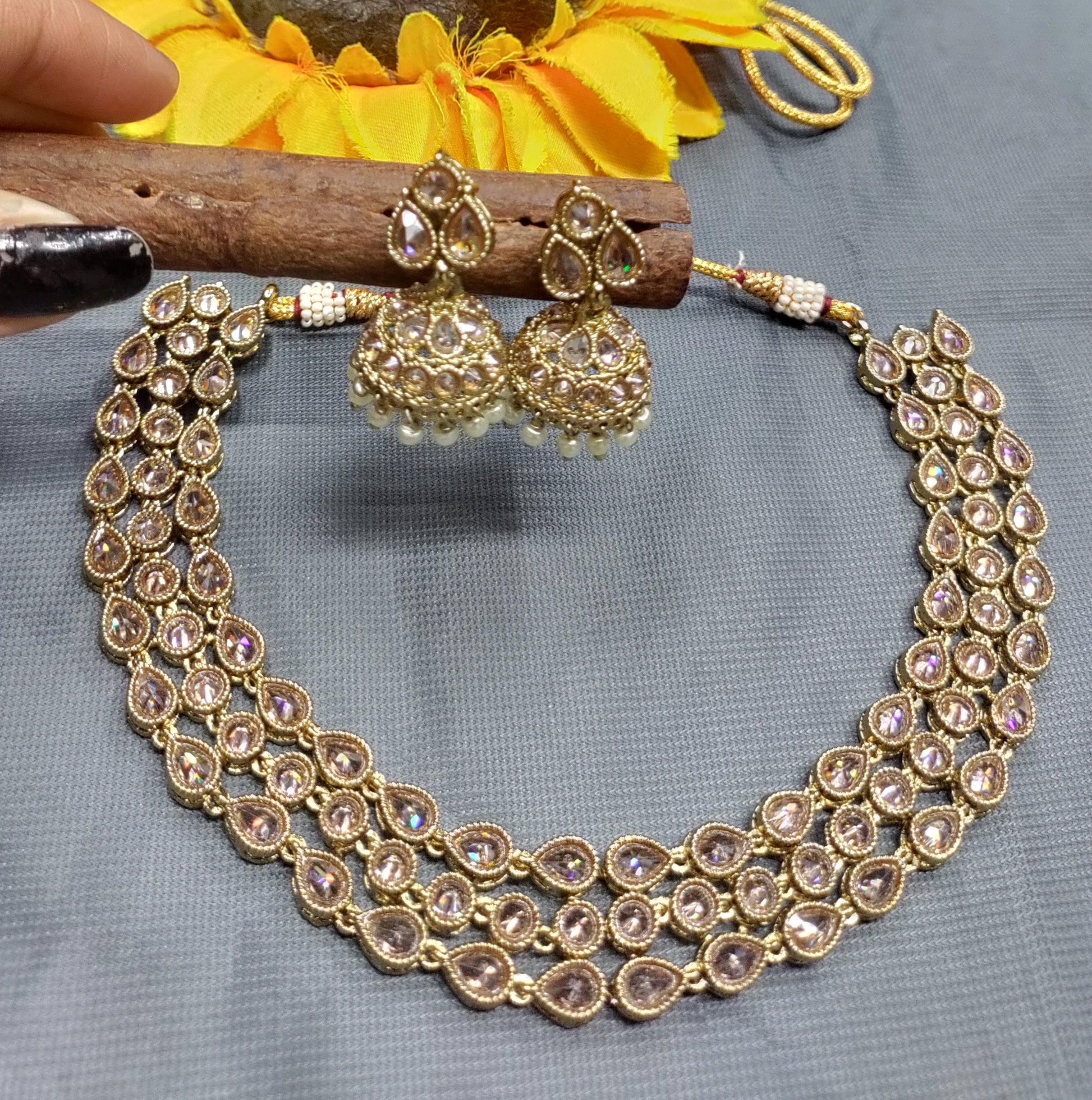 Polki jewellery in golden finish with Polki Kundan with beads stones to make these exquisite necklace really special – light in weight & can be paired with almost any outfit perfect accessory for every occasions party & wedding.