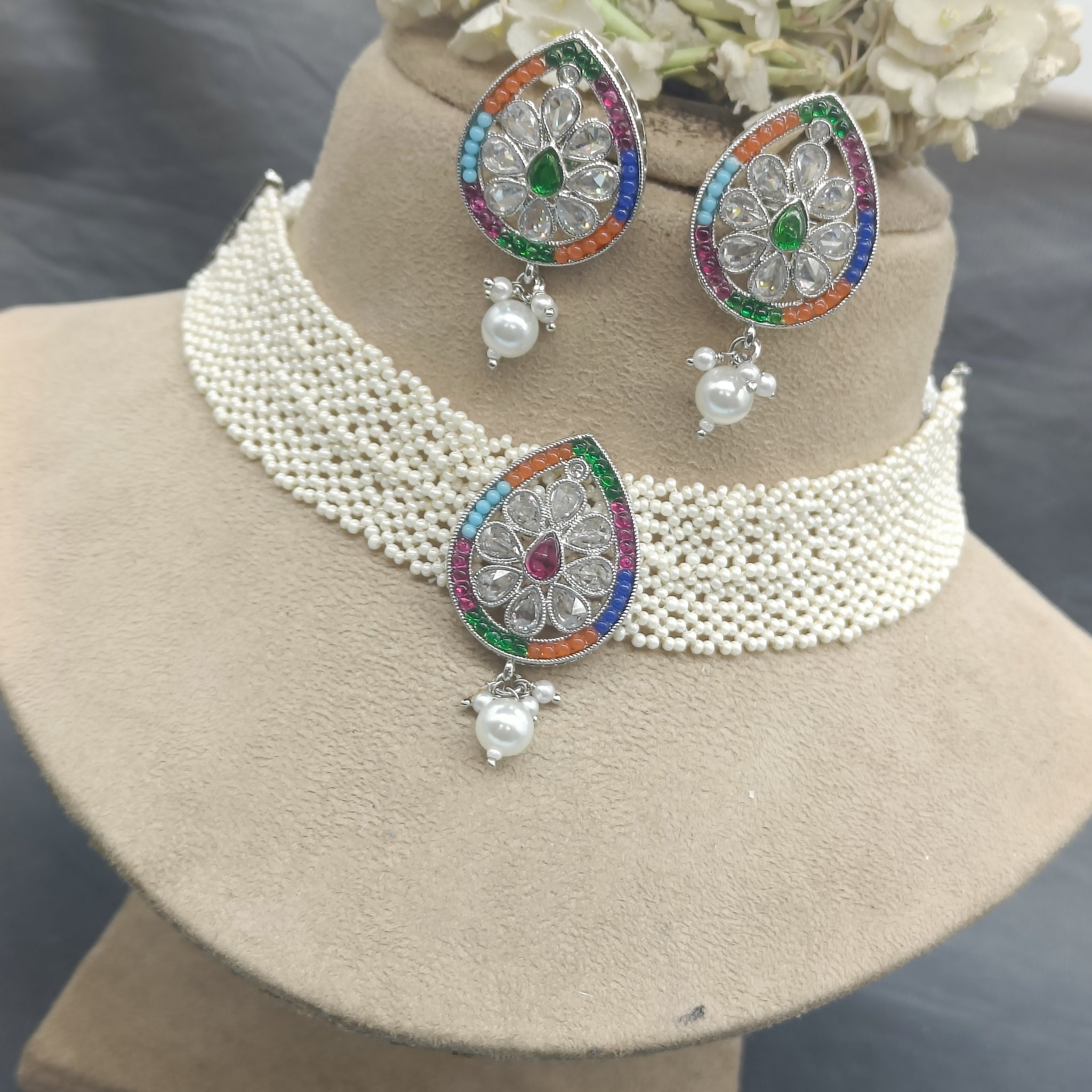 Polki Rodium Choker Necklace Sku 1277 adds a touch of sophistication to any outfit. Made with high-quality materials, it features a stunning design that showcases the beauty of polki stones and rhodium plating. Elevate your style with this necklace that exudes elegance and refinement.