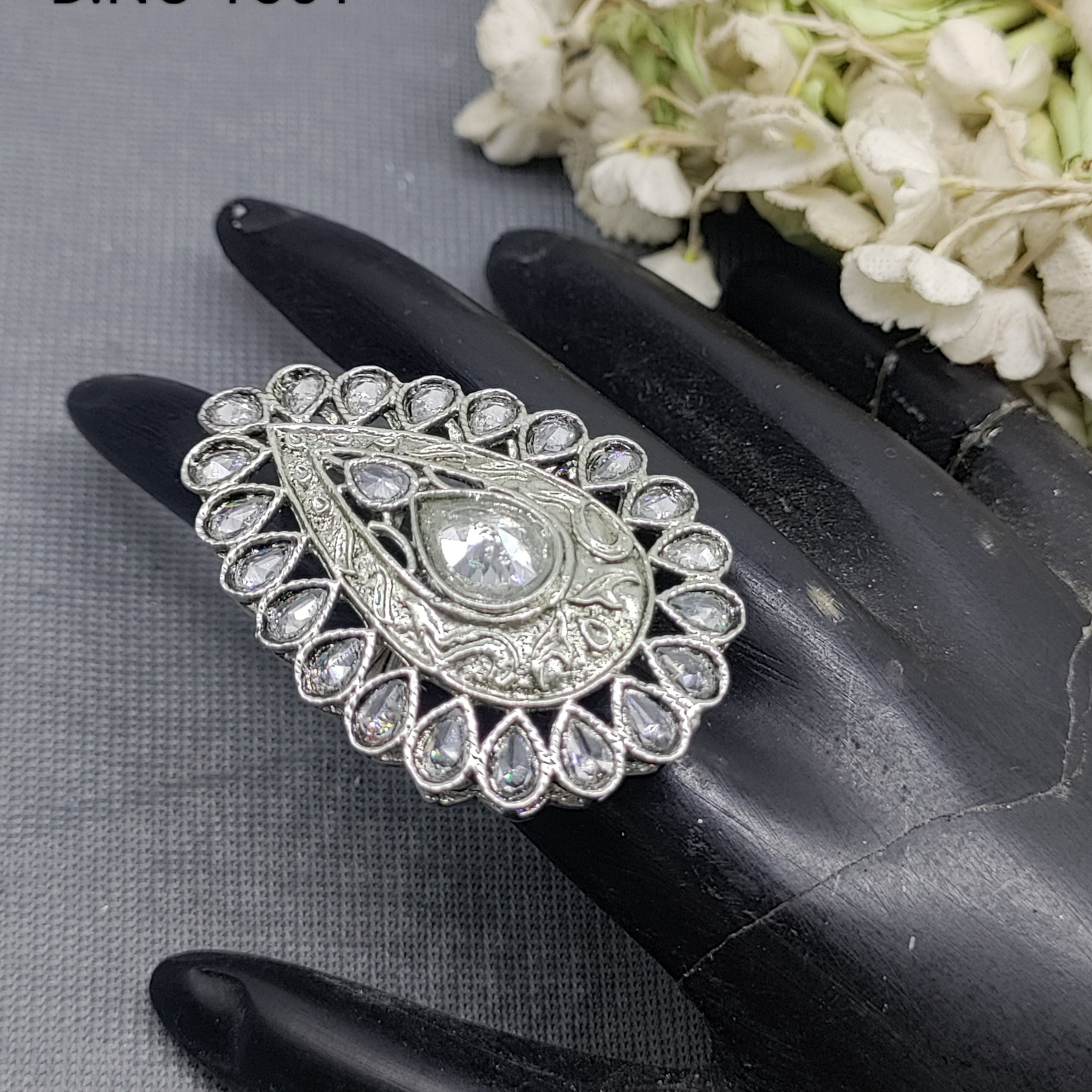 Polki Rodium Finger Ring Sku 1561 E2