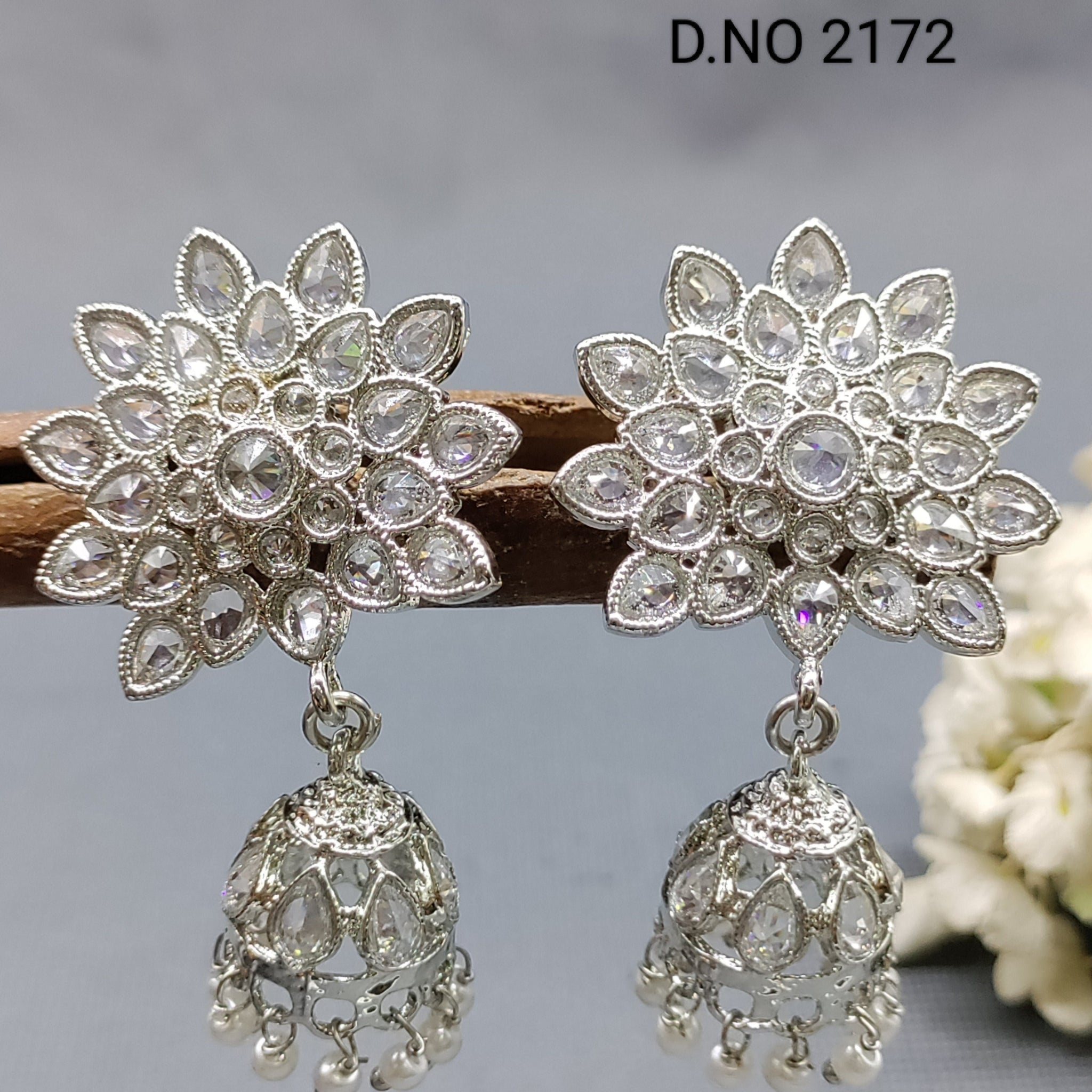 Polki Rodium Jhumki Earring Sku 2172 E1