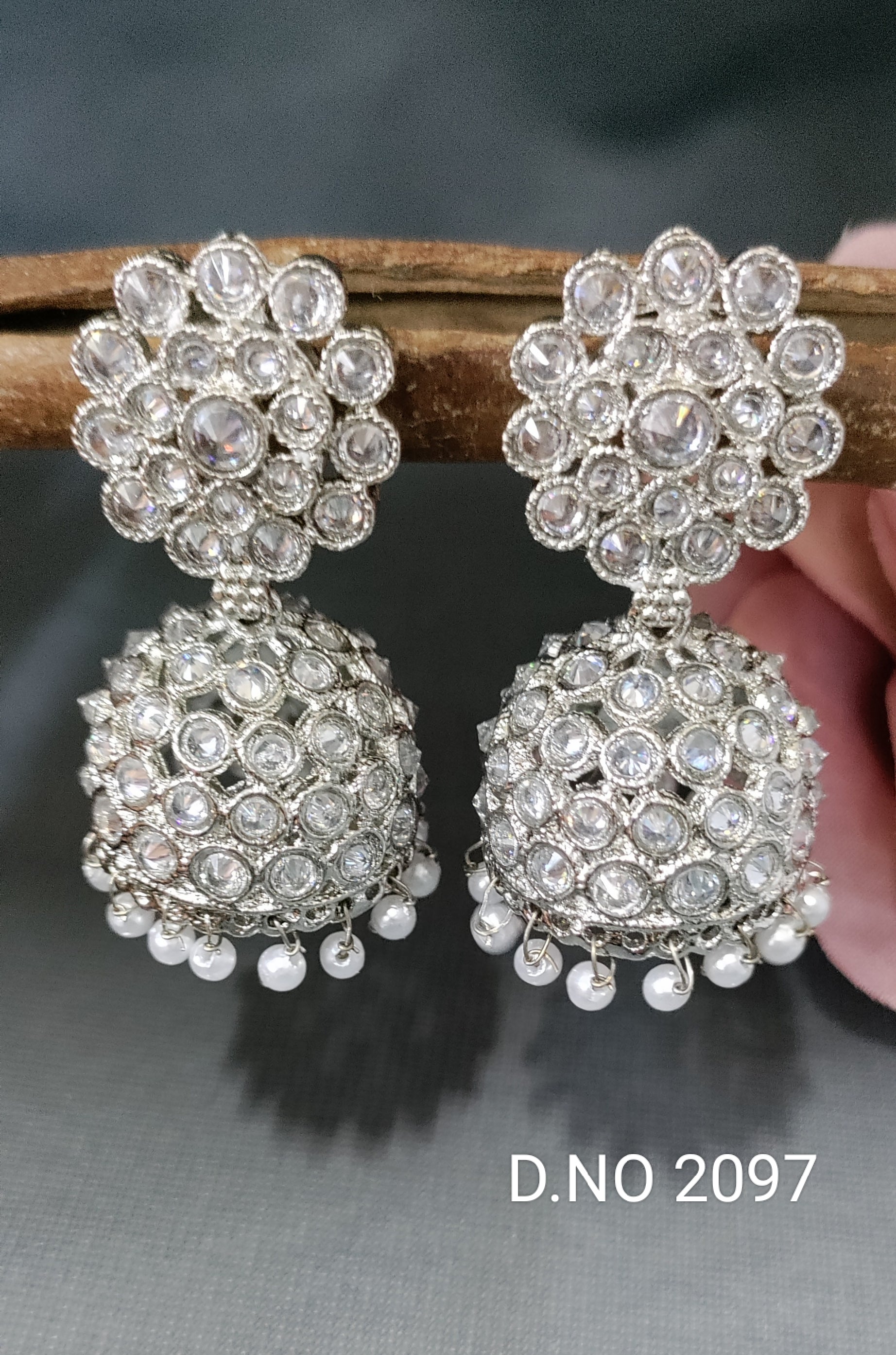 Polki Rodium Jhumki Earrings Sku 2097 A6