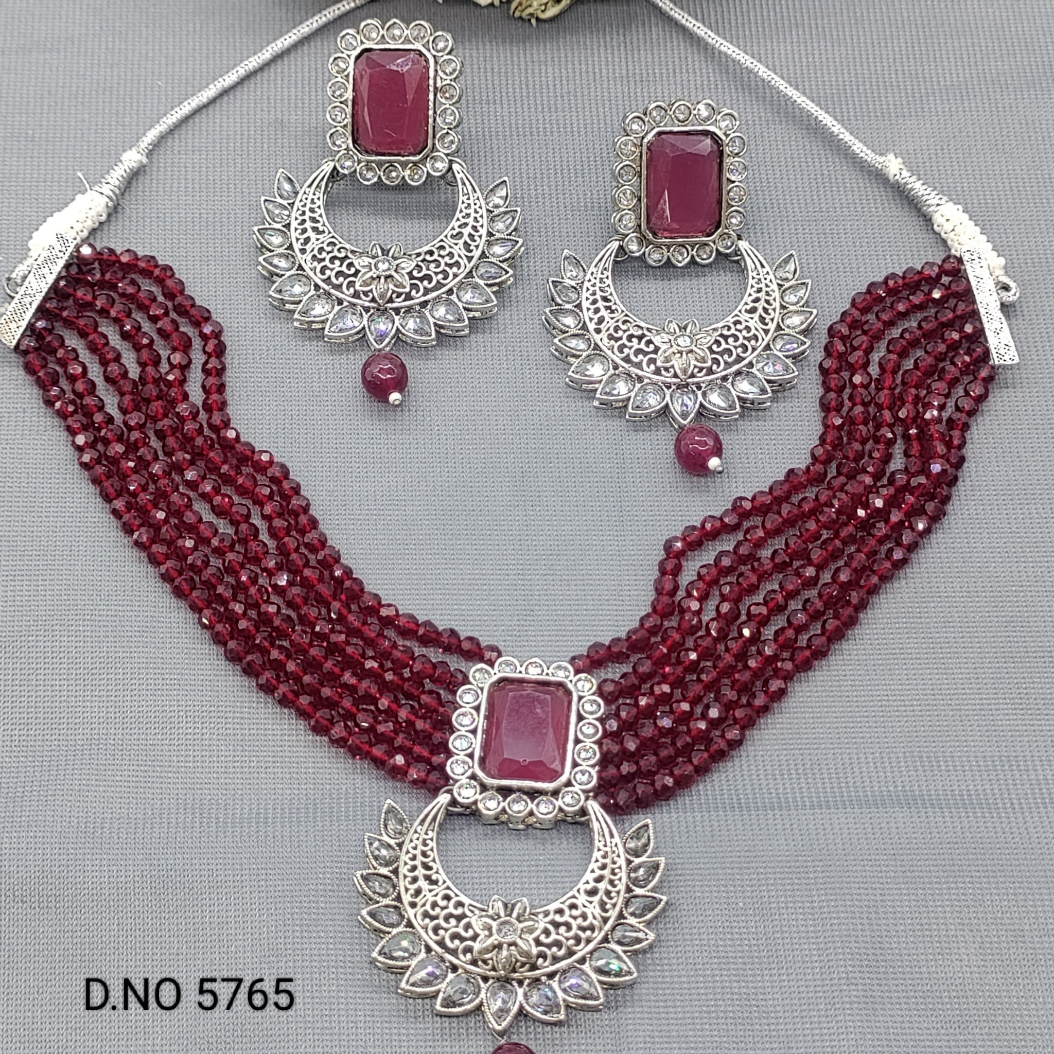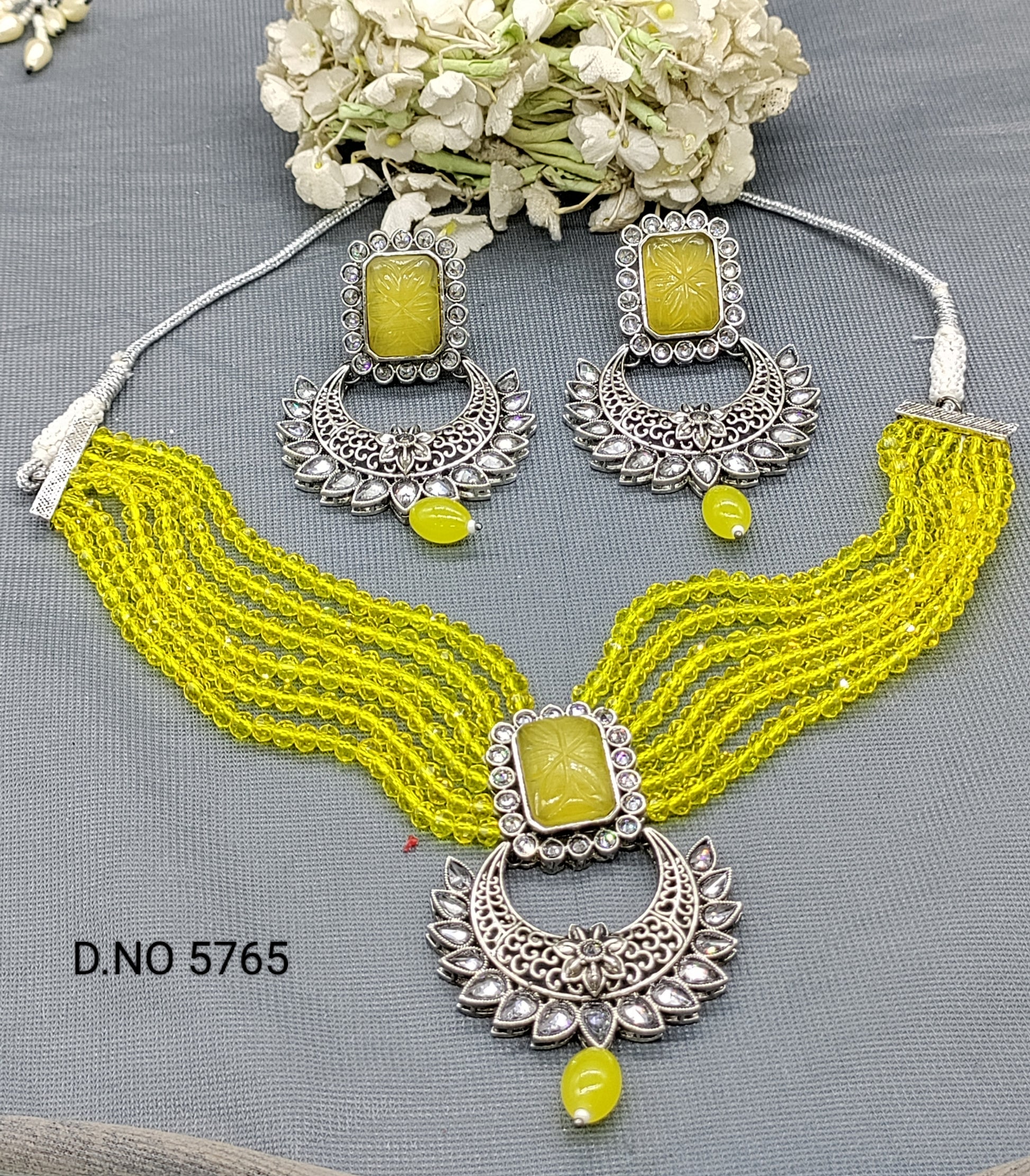 Polki Victorian Necklace Set (Sku 5765). This stunning piece features intricate Polki work, a classic Victorian design, and a versatile necklace that can be dressed up or down. Embrace sophistication with this expertly crafted set.