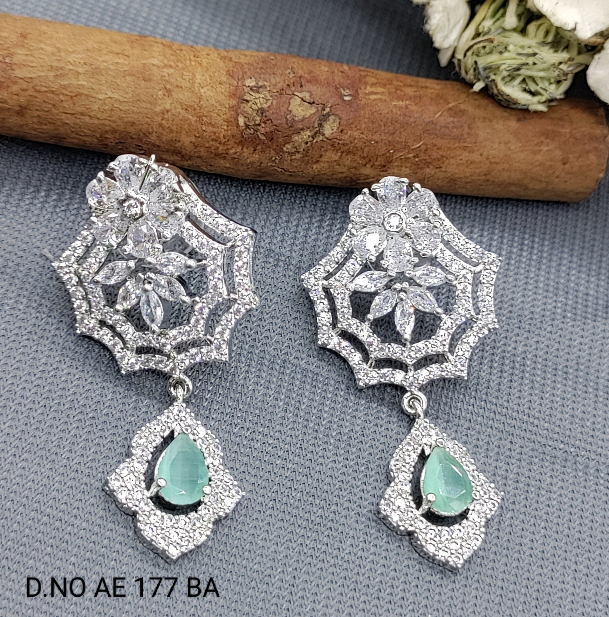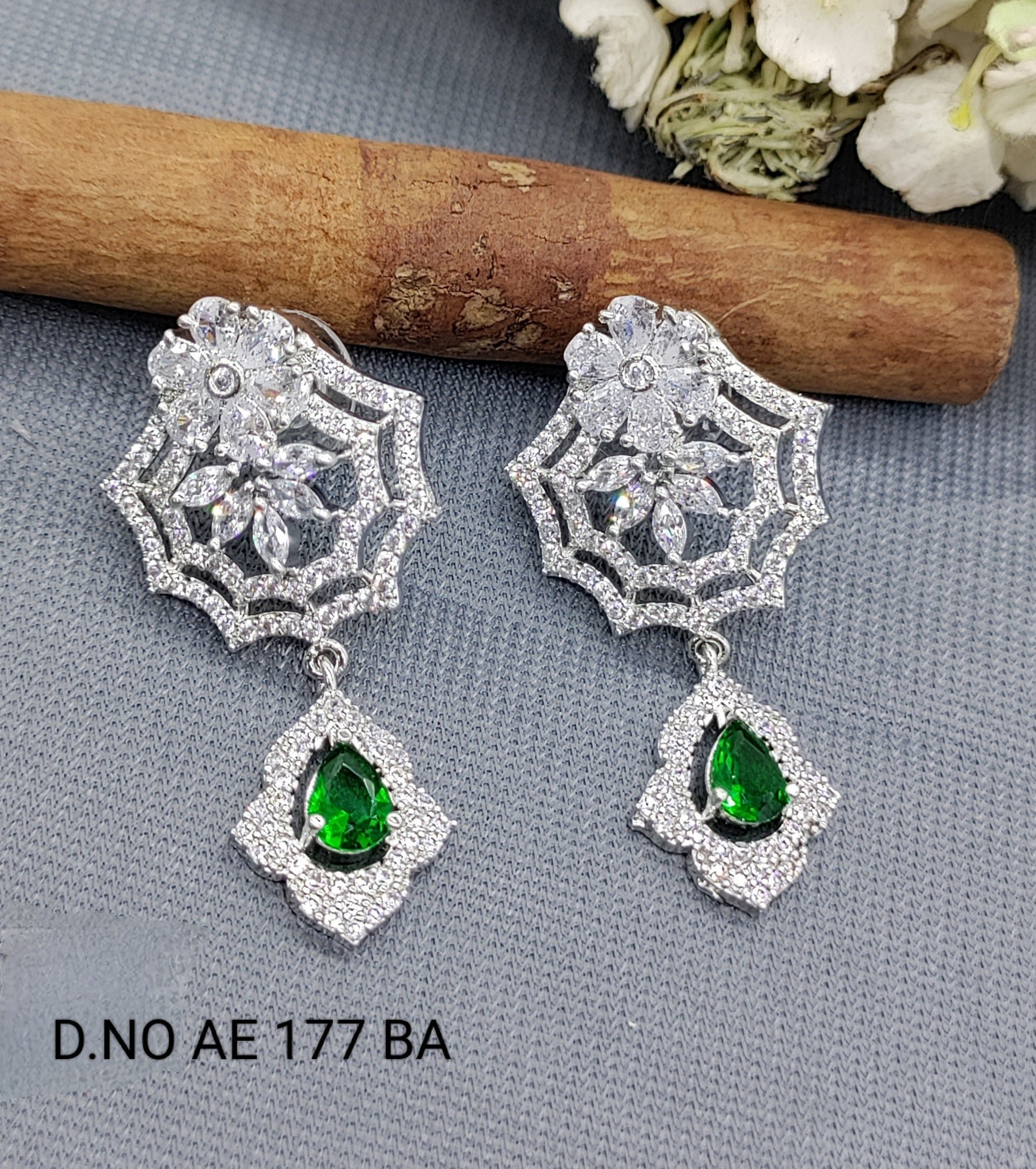 Rodium American Diamond Earrings Sku- AE 177 BA