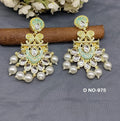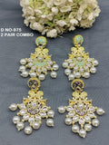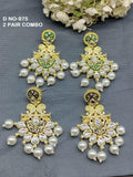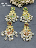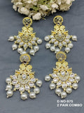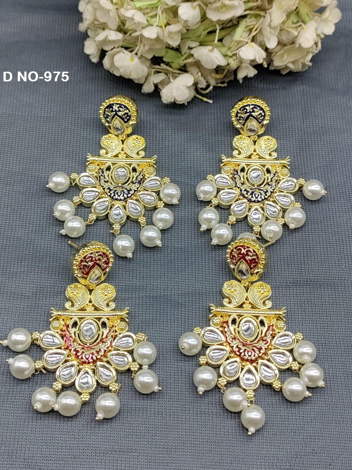 This classic Golden Kundan Earring is handcrafted with minakari work and artfully cut kundan, making it a timeless piece. The intricate design and eye-catching color make it an ideal accessory for any special event.pearl Beads latkan packing of two pair combo pack.