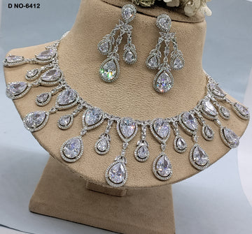 Celebrity Rodium American Diamond Necklace Sku-6412 C-7