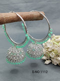 These Rodium Hoop Bali Jhumki Earrings (Sku-1112 E3) feature stunning polki stones and a sleek rodium finish. Experience the classic elegance and modern style these earrings bring to any outfit.