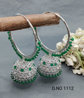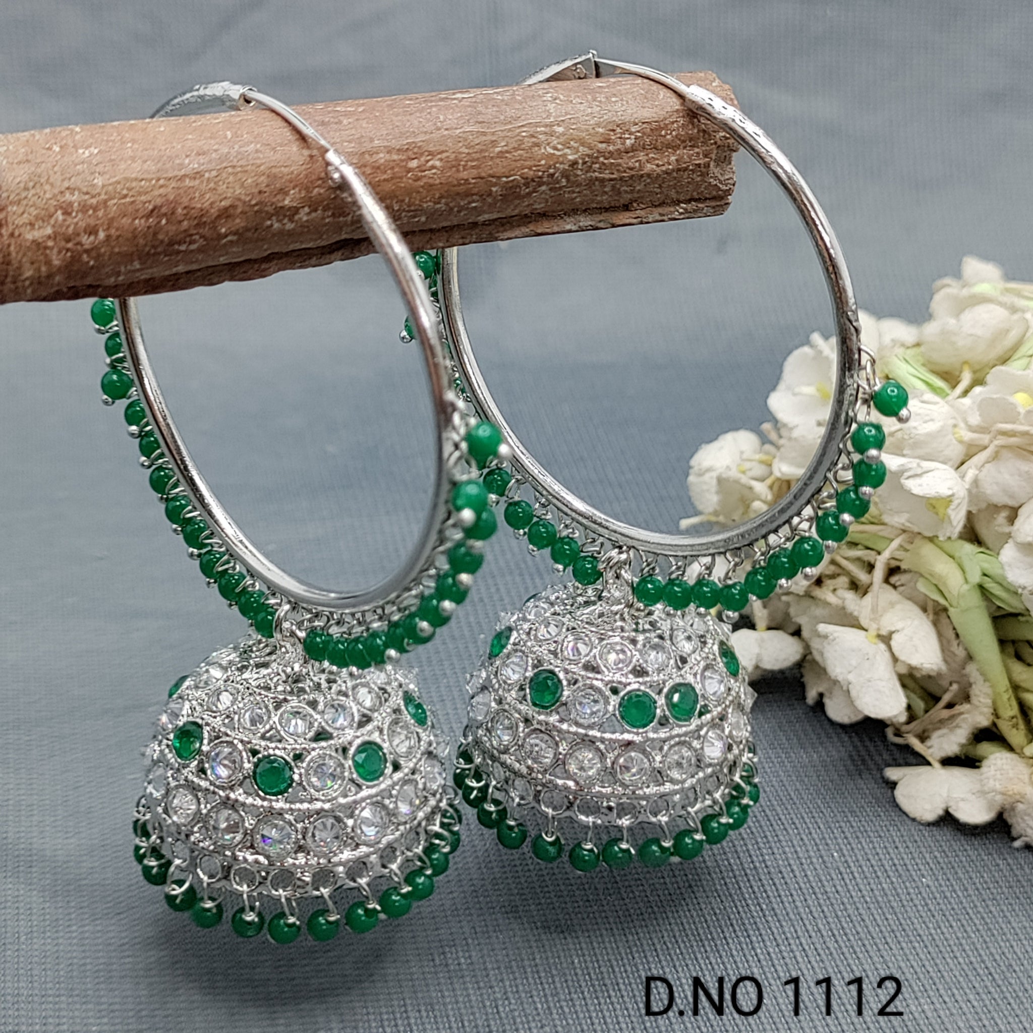 Rodium Hoop Bali Jhumki Earring Sku-1112 E1