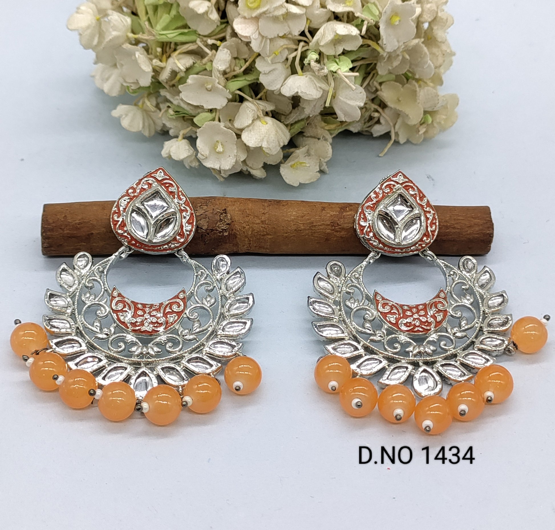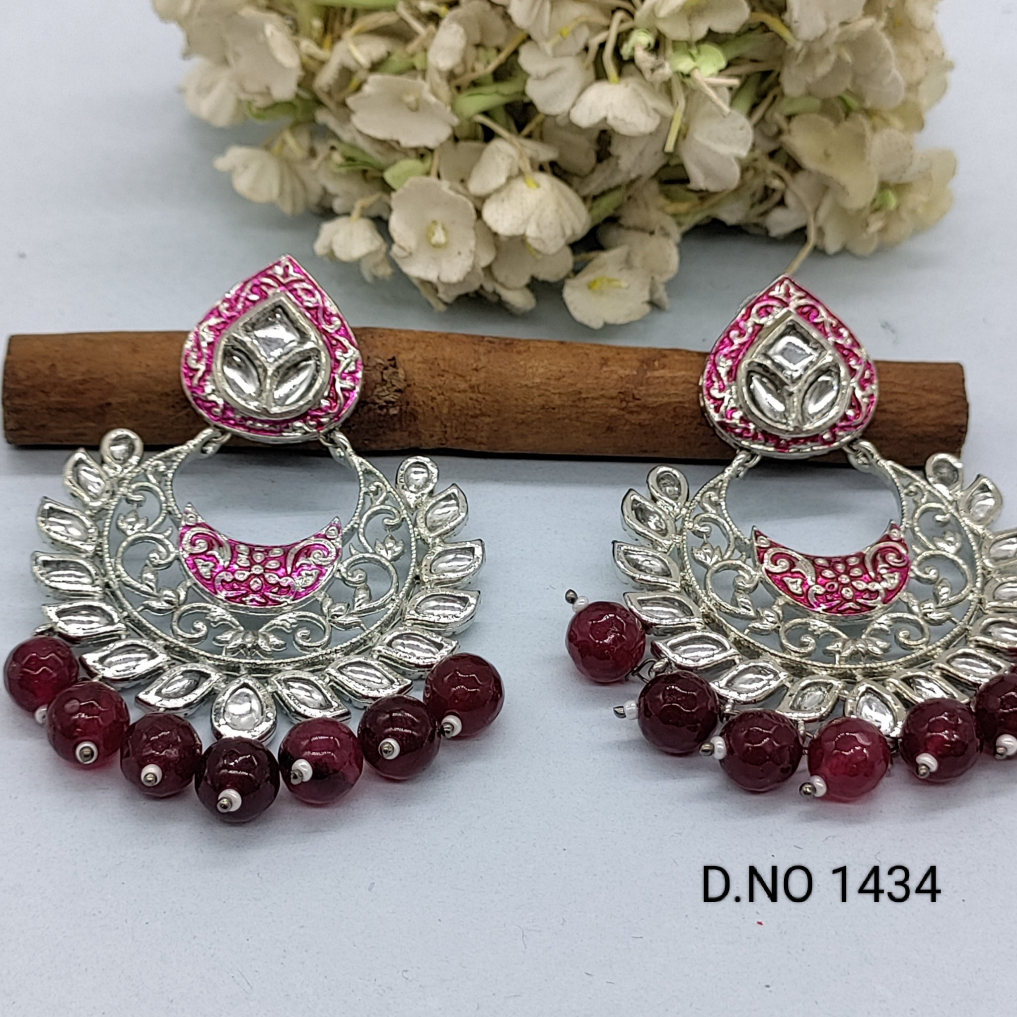 Rodium Polki Kundan Earring. Made with high-quality rodium, these earrings exude a sophisticated and timeless look while adding a touch of shimmer to any outfit. Perfect for any occasion, these earrings are sure to make a statement.