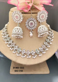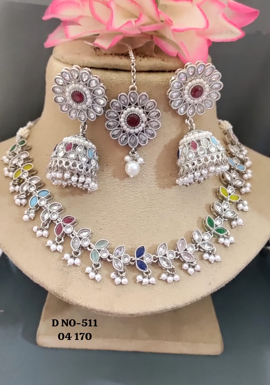 This elegant Rodium Polki Necklace set SKU 511 is expertly crafted and designed for the modern woman. Made with high-quality materials, it offers both style and durability. With its sophisticated design, this necklace is perfect for any occasion, making it a must-have in your jewelry collection.