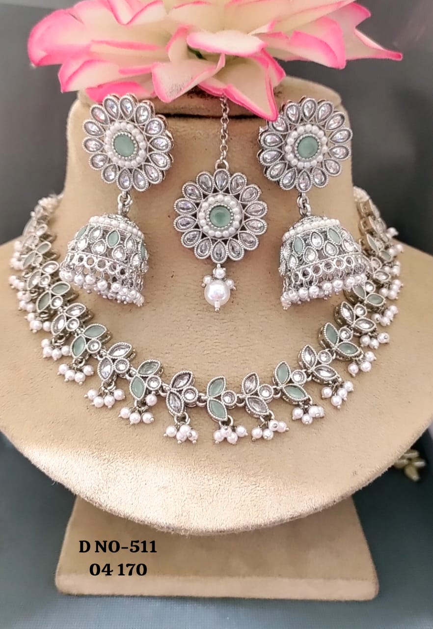 Rodium Polki Necklace set SKU 511