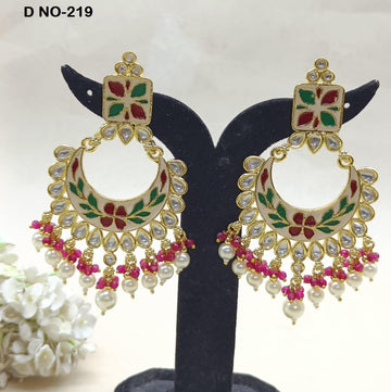 Tiyani Golden Kundan Earring Sku-219 D2. Made with top-quality materials, these earrings showcase exquisite kundan work in a stunning gold finish. Elevate any outfit with these intricately designed earrings that are sure to make a statement. Expertly crafted for a luxurious and elegant look.